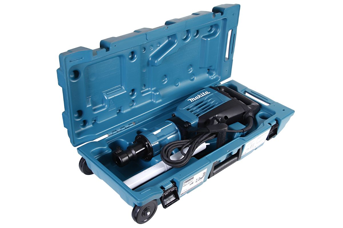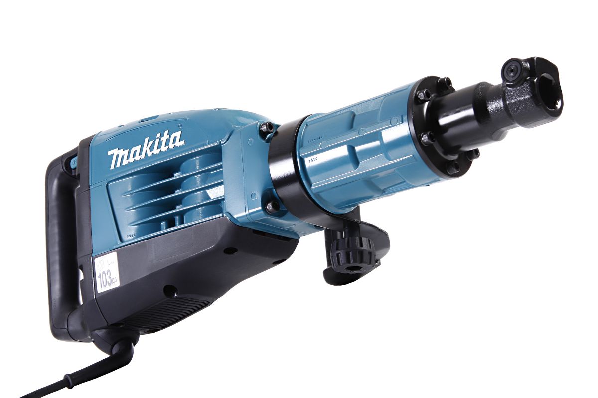 Электрический отбойный молоток MAKITA HM1307C — бетонолом для демонтажа конструкций из кирпича и бетона, вскрытия асфальта и других твердых покрытий. Двигатель на 1510 Вт развивает до 1450 уд/мин. Сила удара — 33,8 Дж. Преимущества модели — поддержание постоянного количества оборотов под нагрузкой; плавный пуск двигателя; световые сервисные индикаторы (один — для контроля степени износа щеток; и второй — для отслеживания исправности кабеля и выключателя).