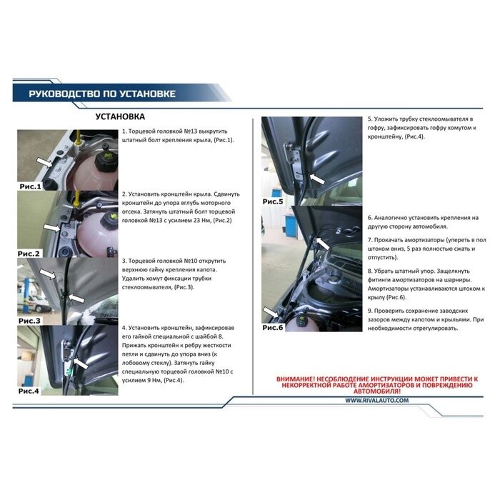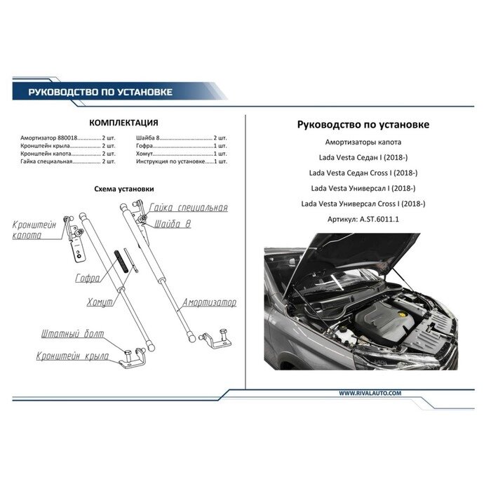 Упоры капота Rival для Lada Vesta седан, универсал, 2018-н. в. Vesta CNG седан, 2017-н. в. Vesta Cross седан, универсал,