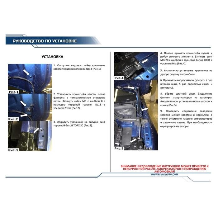 Газовые упоры капота Rival для Skoda Karoq 2020-н. в., 2 шт., A. ST. 5108.1
