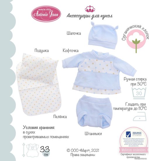 Голубая кофта, шапка, штанишки, подушка, пеленка 91033-12