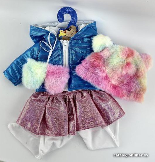 - Комплектация курточка, блестящая юбка, колготки, варежки на резинке и забавная шапочка