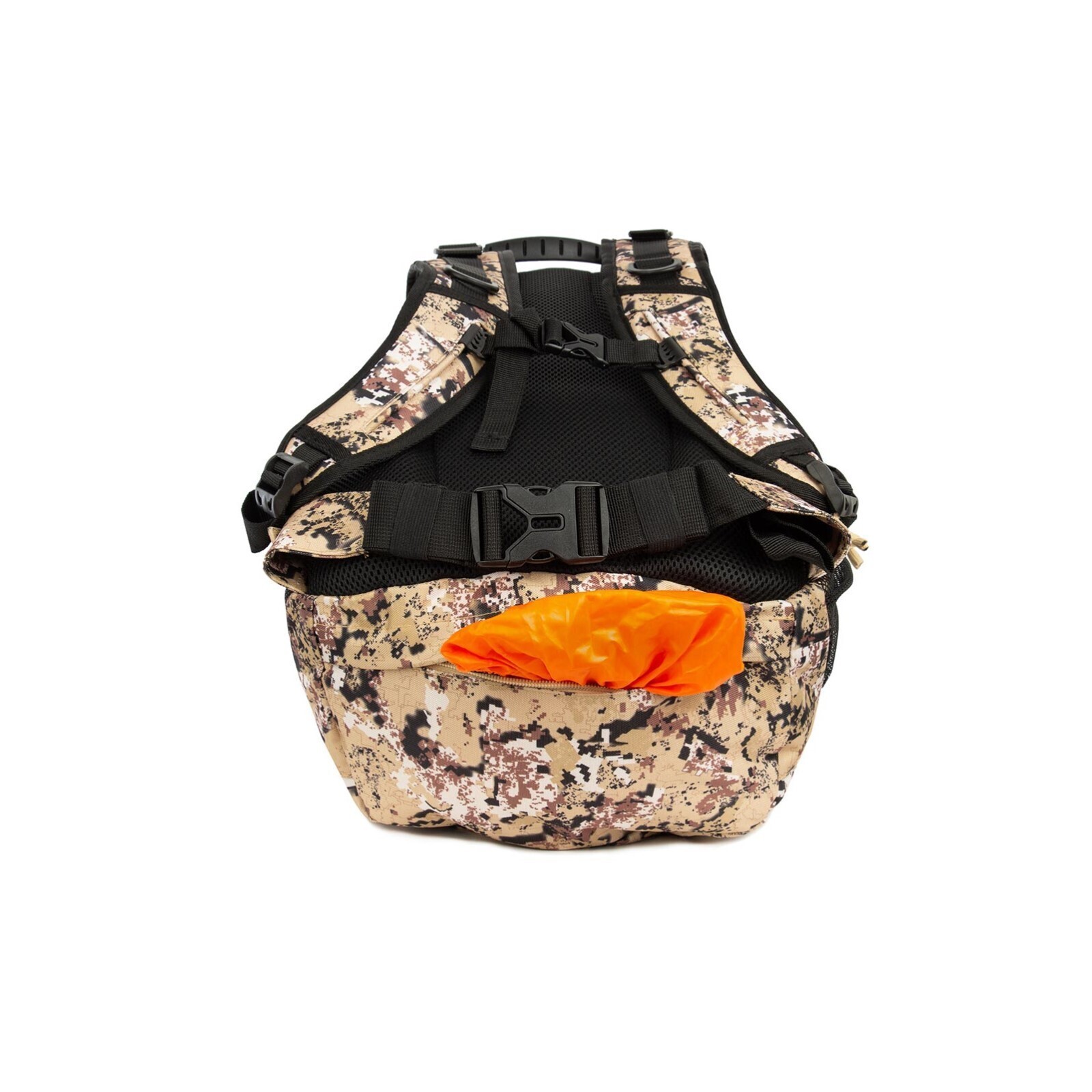Охотничий рюкзак малого объема из прочного полиэстера с полиуретановым влагозащитным покрытием и морозостойкой пропиткой. Имеет основное отделение для хранения вещей, передний карман, два боковых сетчатых кармана и крепление для ружья во фронтальной части рюкзака. Рюкзак оснащен удобной эргономичной спинкой с широкими наплечными лямками. Возможна регулировка рюкзака по объему при помощи боковых утяжек. В дне рюкзака предусмотрен карман, в котором находится влагозащитный чехол оранжевого цвета. Все рюкзаки выполнены в цветах коллекции своего бренда. Это значит, что покупатель сможет легко комбинировать наш рюкзак с другими изделиями и аксессуарами. объемное основное отделение для хранения вещей широкие наплечные лямки и удобная спина поясной ремень влагозащитный чехол оранжевого цвета боковые утяжки крепление для ружья боковые сетчатые карманы.