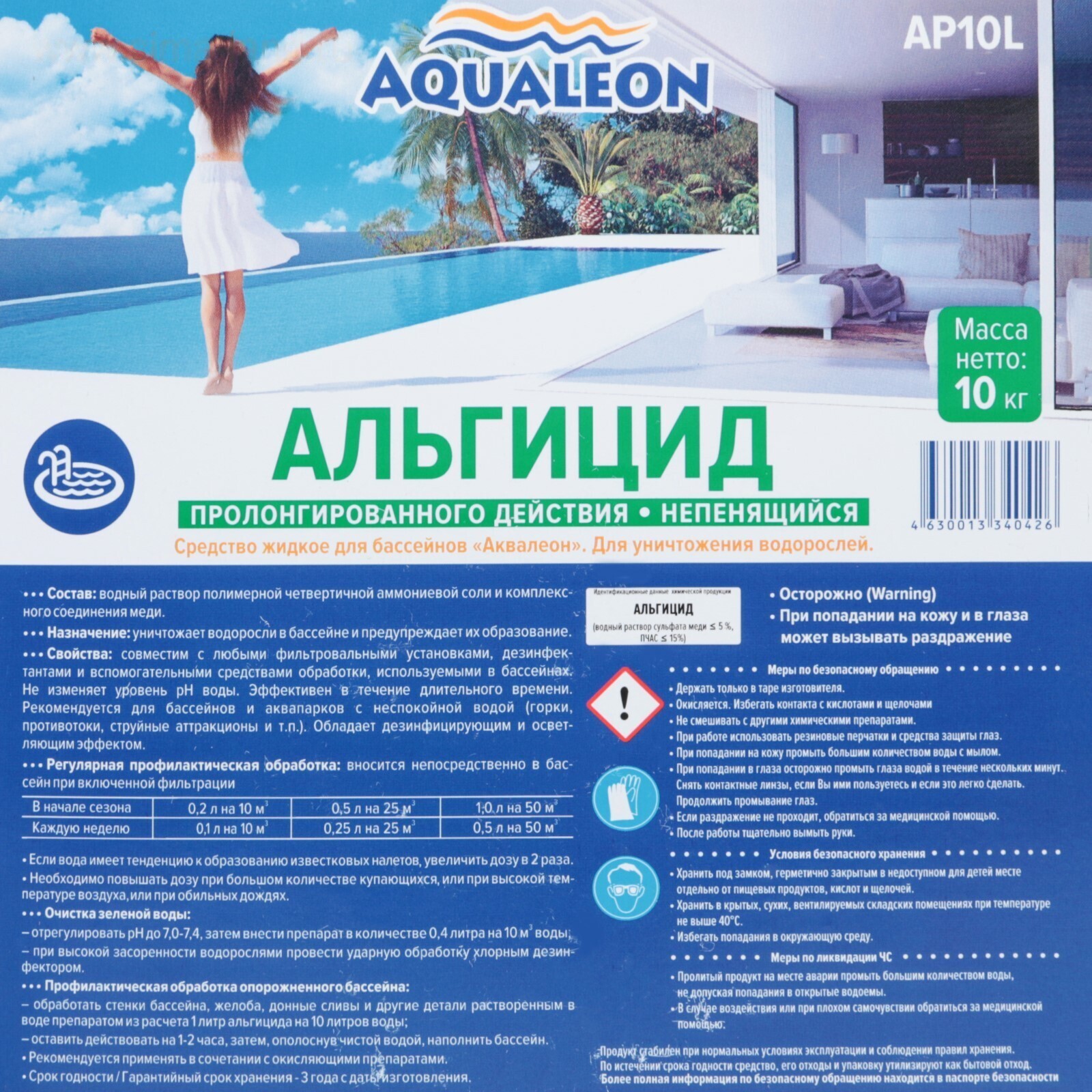 Альгицид Aqualeon — эффективное непенящееся средство, которое уничтожает водоросли в бассейне и предупреждает их образование.