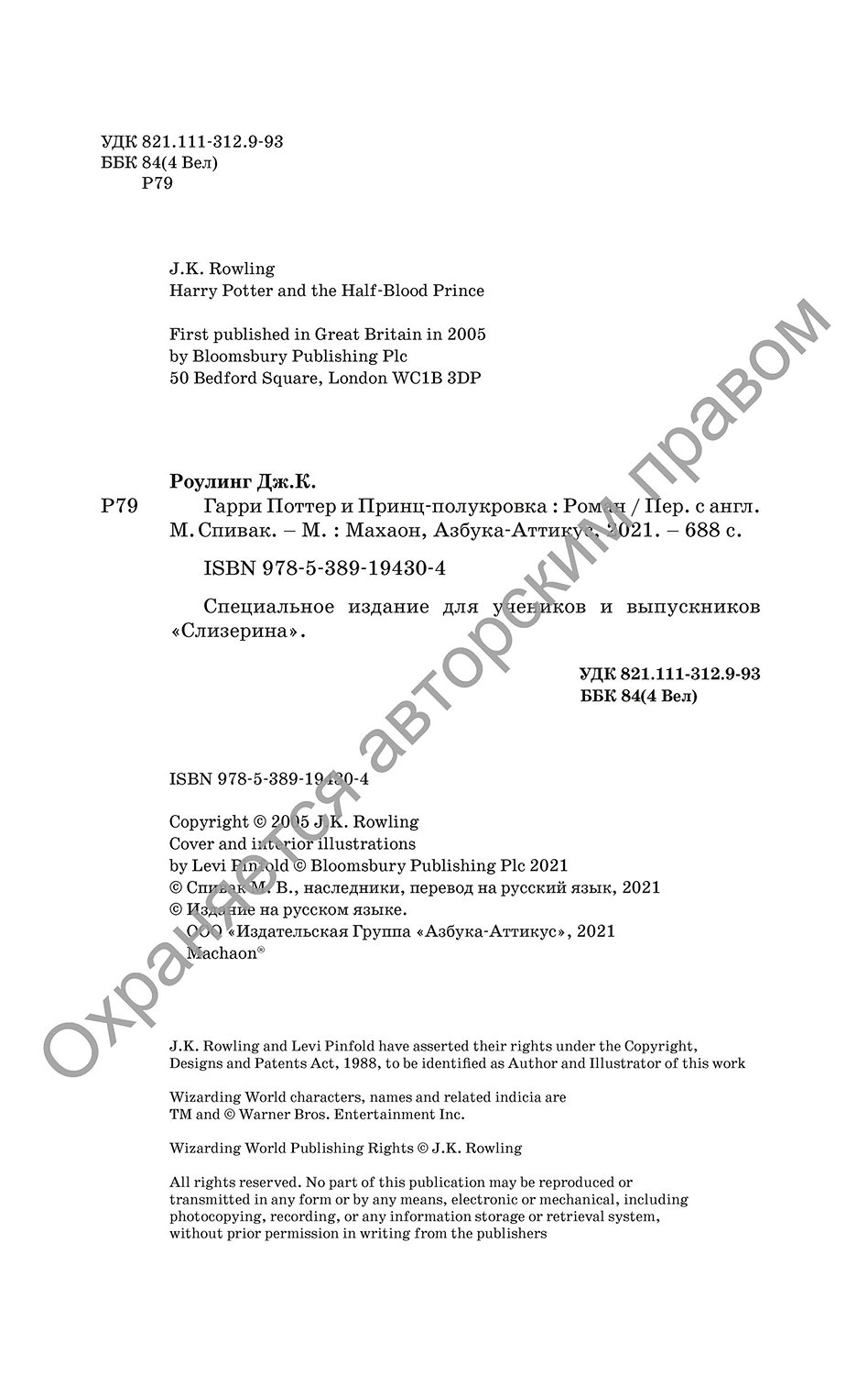 Книга Махаон Гарри Поттер и Принц полукровка Слизерин 978-5-389-19430-4