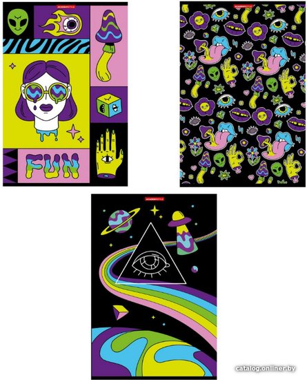 - Цвет желтый, фиолетовый, цветной принт, черный