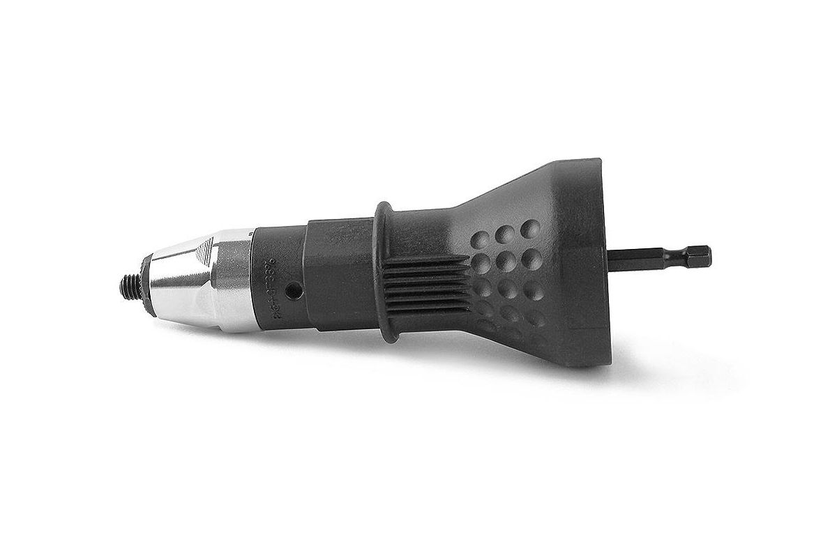 С помощью данной насадки можно превратить Ваш шуруповерт в заклепочник, способный устанавливать резьбовые заклепки размером М6, М8 и М10.