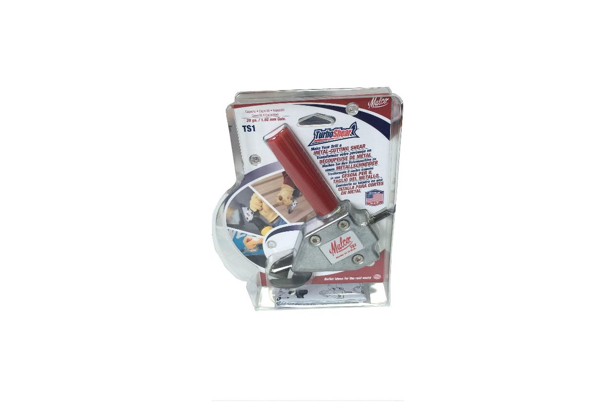 Модель TurboShear TS1 - классическая, но более доступная модель, аналогичная TurboShear HD. TurboShear TS1 превратит Ваш шуруповерт или дрель в ножницы по металлу. Насадку в шуруповерте можно повернуть на любой градус и установить в любое положение для маневренности. MALCO TurboShear TS1 может работать как при высоких, так и при низких скоростях, если необходимо точно следовать линии разреза. Мощный алюминиевый корпус и ножи из сверхпрочной углеродистой стали обеспечат длительный срок службы при работе с листовым металлом толщиной до 1,0 мм. Отличия от TSHD - телескопическое крепление на дрели не входит в комплект поставки, таким образом при работе необходимо задействовать обе руки. Толщина металла - сталь до 1,0 мм. Требования к дрели - мин. 14.4 V DC – макс. 7A AC. Дрель / шуруповерт в стоимость не входит. Хвостовик - 6,35 мм. Материал корпуса – Алюминий. Производство - США