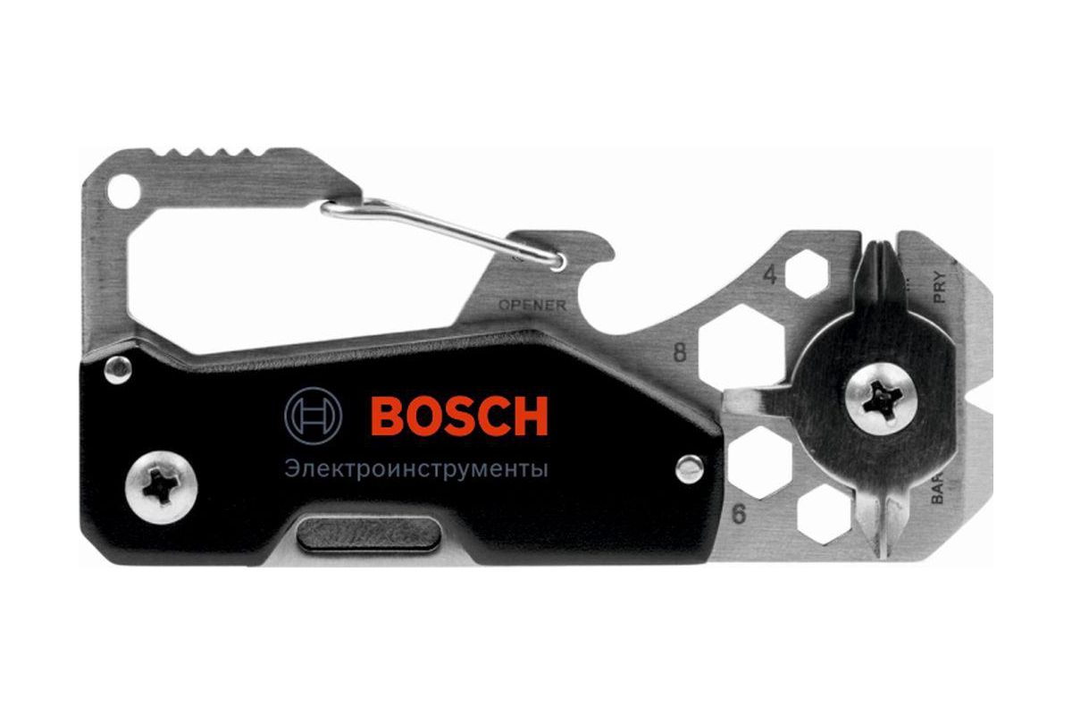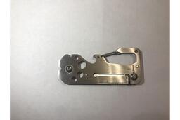 Легкий удобный многофункциональный инструмент с ножиком, карабином, линейкой, открывалкой, 4-мя шестигранными ключами, спицевым ключом, гвоздодером, одной плоской отверткой, одной маленькой и одной большой отвертками Philips.