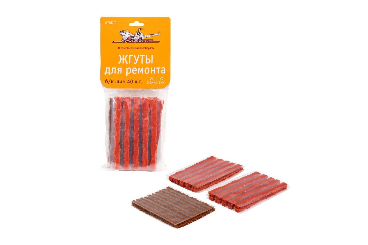 Жгуты для ремонта AIRLINE ATRK-9 б/к шин 40 шт. в пакете (D3,5 мм + D6 мм)