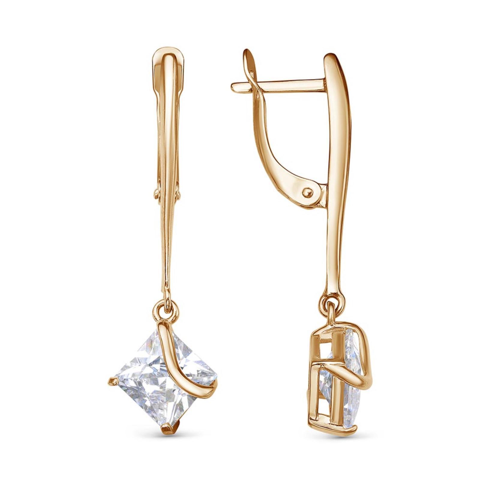 Серьги "Ромб с фианитом" позолота, цвет белый