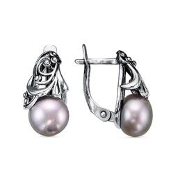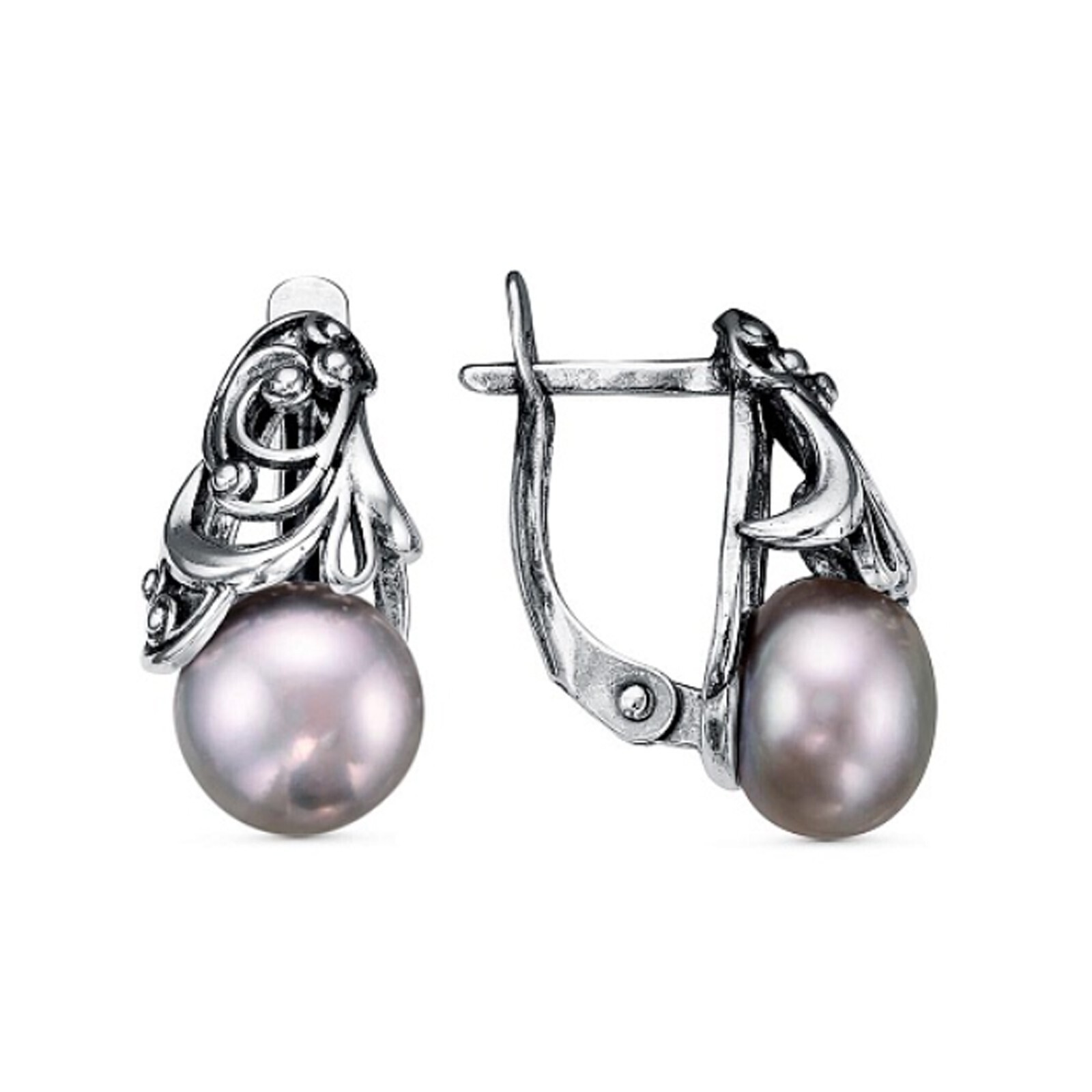 Серьги "Жемчуг" ветвь, посеребрение с оксидированием, цвет серый