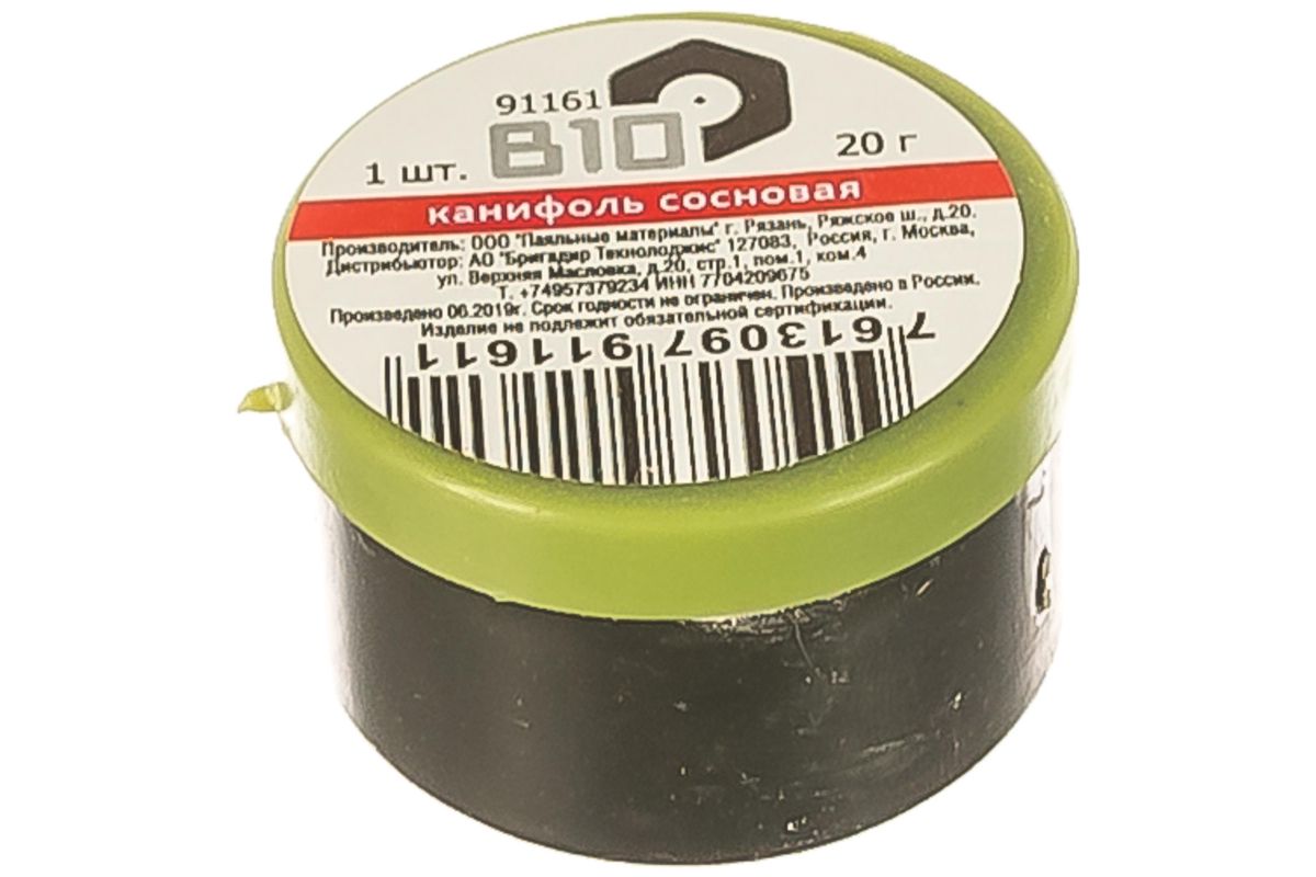 Канифоль сосновая натуральная. Применяется для пайки радиодеталей и ответственных узлов в промышленности и быту. В состав средства входит сосновая смола высшего сорта. Канифоль также может использоваться в качестве нейтрального флюса.