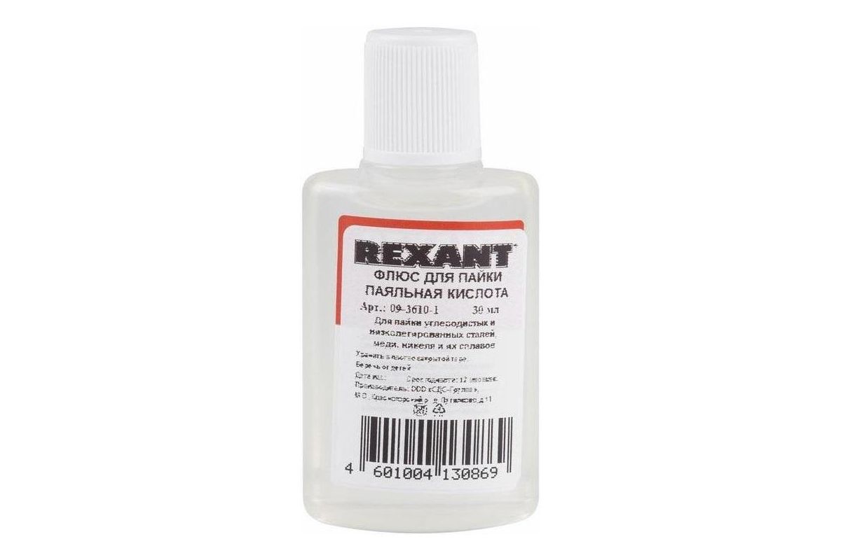 Флюс для пайки REXANT 09-3610-1 ПАЯЛЬНАЯ КИСЛОТА, 30 мл, в индив. упаковке