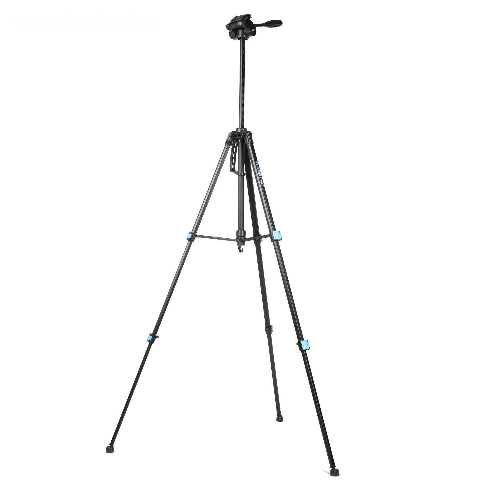 Falcon Eyes Travel Line 2400 —3-х секционный штатив с 3D-головкой, пузырьковым уровнем и выдвижной центральной колонной. Максимальная высота 157 см, нагрузка до 3 кг.