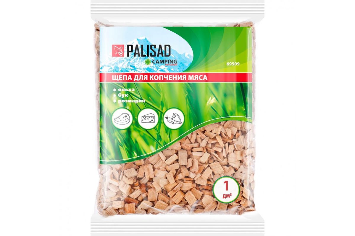 Щепа для копчения PALISAD 69509 мяса (ольха+бук+розмарин) camping россия
