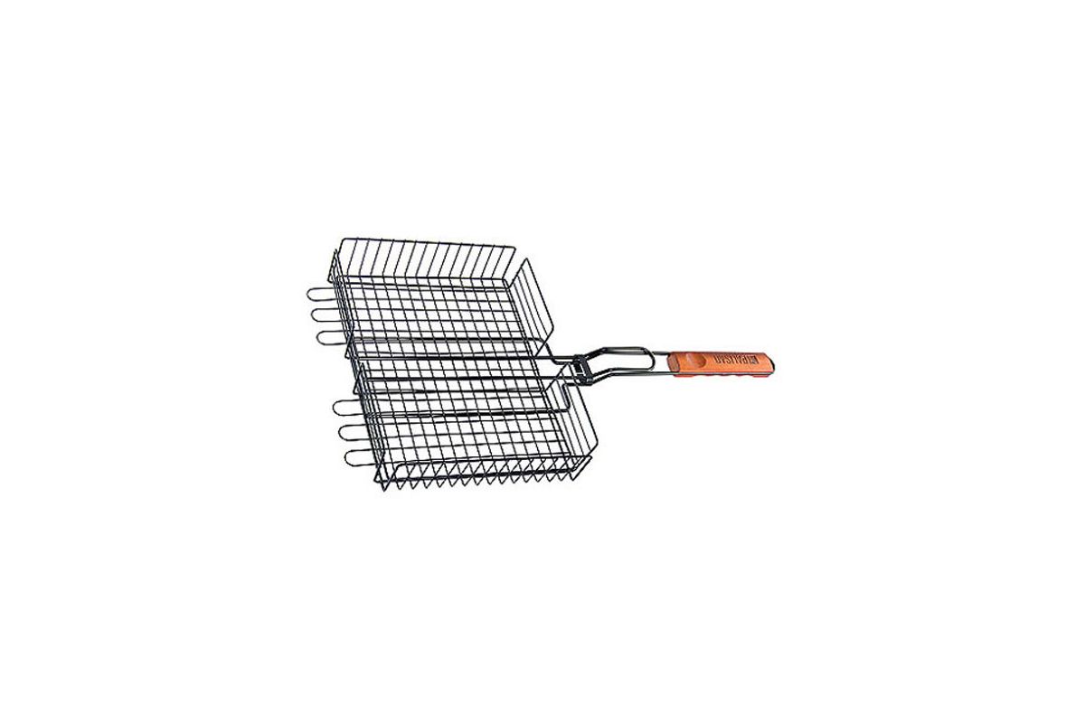 Высококачественная жаропрочная сталь. Эргономичная рукоятка. Широкое кольцо-фиксатор. Конструкция объемной решетки гриль позволяет фиксировать верхнюю плоскость на разной высоте, поэтому на решетке можно запекать продукты различной толщины —