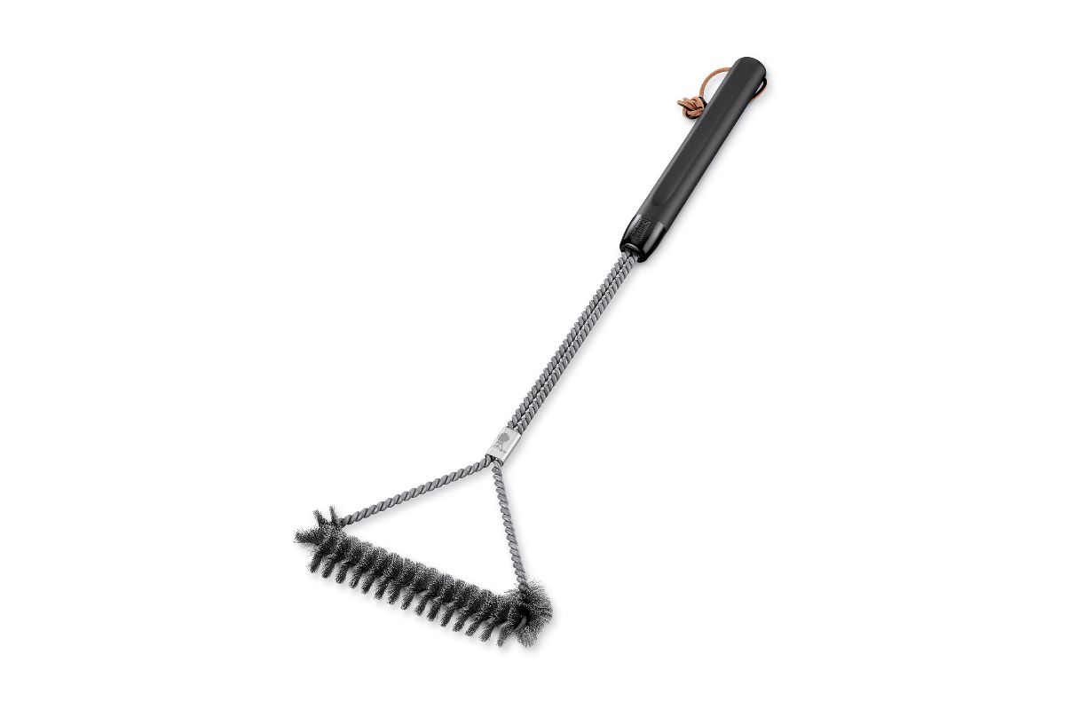 Щетка используется для очистки как самой решетки, так и труднодоступных мест по ее краям. Покрытие из фарфоровой эмали не портится щетинками из высококачественной стали. Имеет эргономичную ручку, а также кожаную петлю для подвески