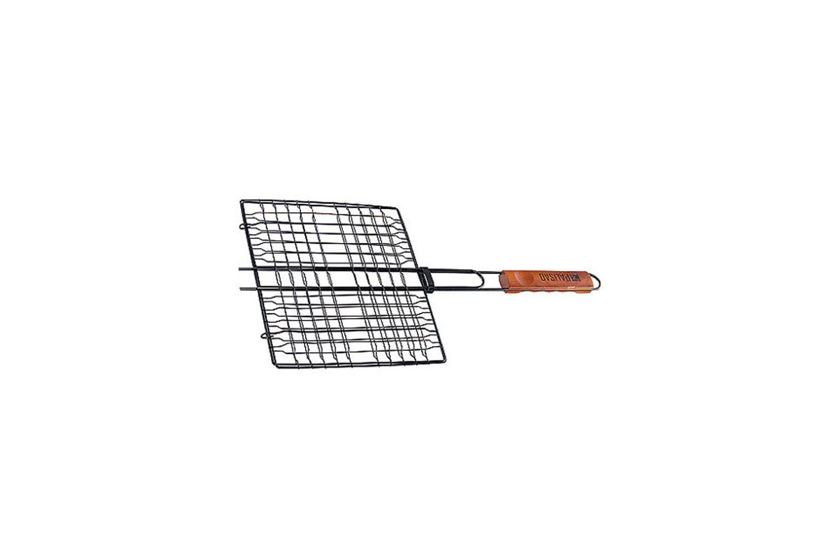 Высококачественная жаропрочная сталь. Эргономичная рукоятка. Широкое кольцо-фиксатор. Конструкция объемной решетки гриль позволяет фиксировать верхнюю плоскость на разной высоте, поэтому на решетке можно запекать продукты различной толщины — от стейков до куриных окорочков, не передавливая их и оставляя сочными.