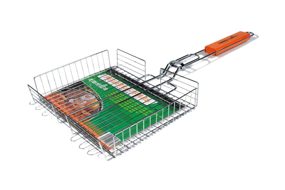 Двойная объемная решетка-гриль Green glade 7002 представляет собой удобное приспособление для приготовления мяса, рыбы и овощей на углях. Решетка подходит как для использования на приусадебном участке, так и для походов, пикников. Изделие состоит из нескольких частей, имеет навесную конструкцию.