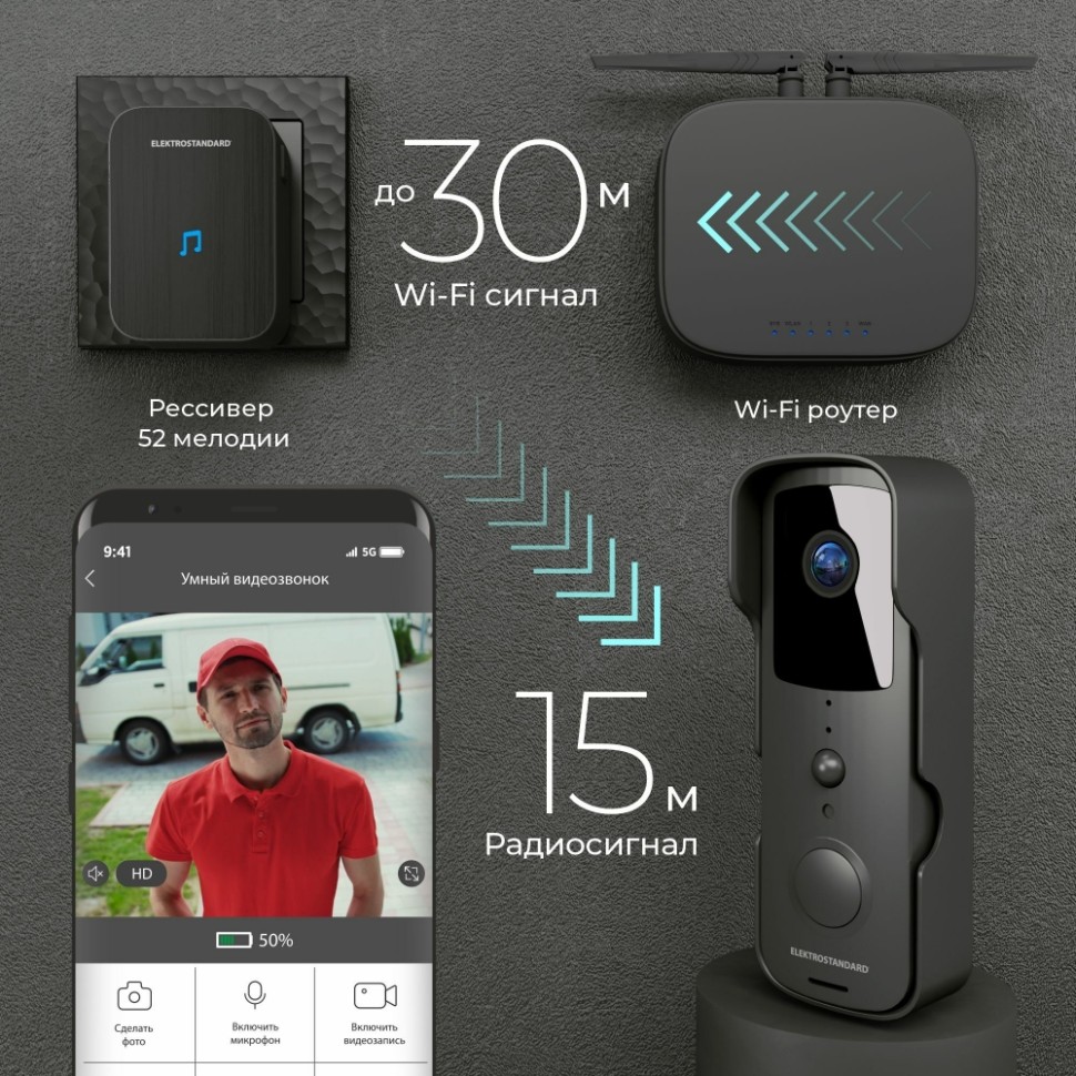 Умный видеозвонок черный Elektrostandard /00 (a059338)