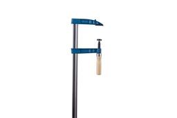 Универсальная F-образная струбцина для фиксации деталей при сборке и их сжатия при склеивании. Имеет прямую профилированную направляющую с насечками из прочной высоколегированной стали и кованные насадные упоры захвата. Винтовой прижим с износостойкой резьбой трапециевидного профиля. Рабочие поверхности захвата оборудованы съемными пластиковыми накладками.