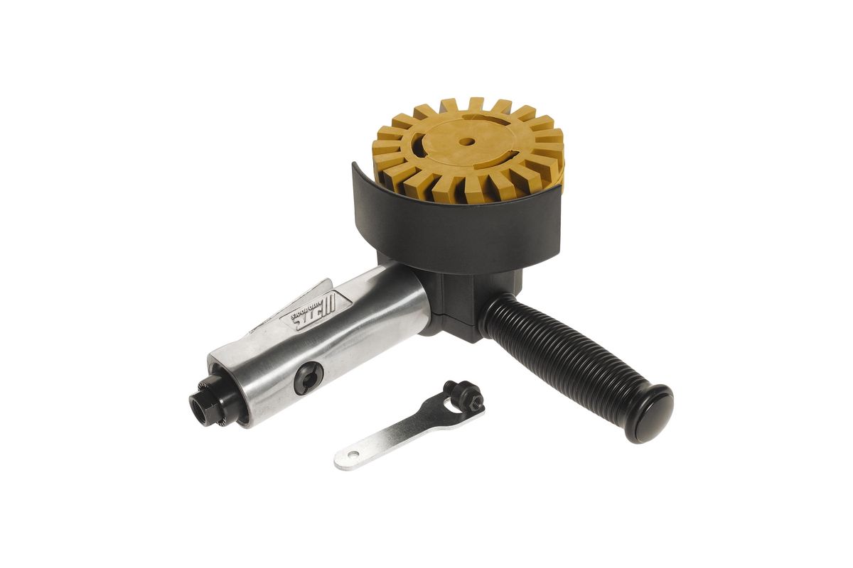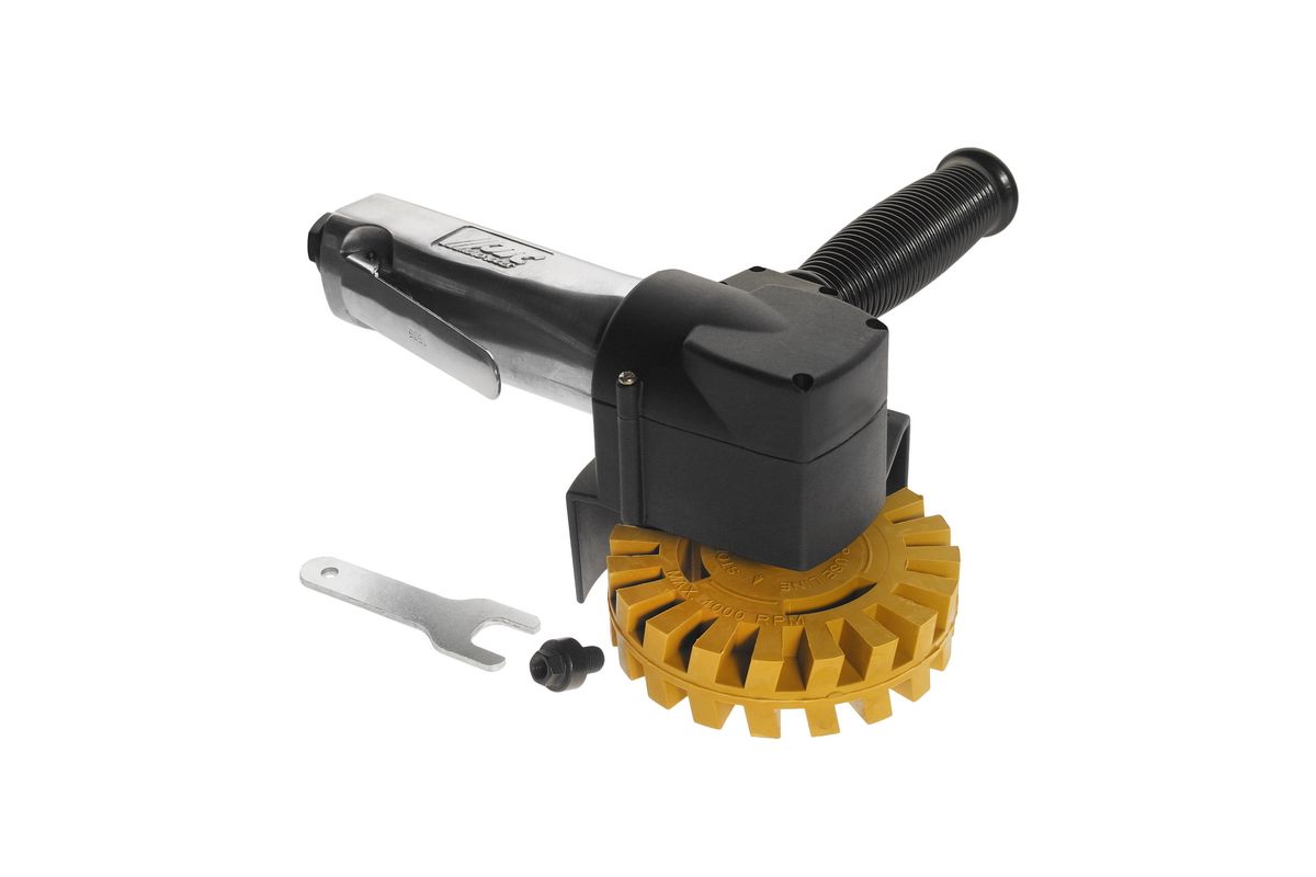 - Прорезиненная рукоятка обеспечивает удобный захват усиленной пневматической зачистной машинки JTC 5642;