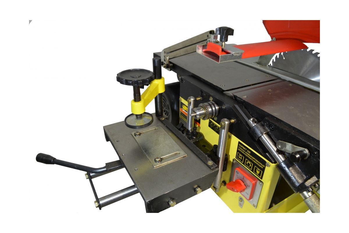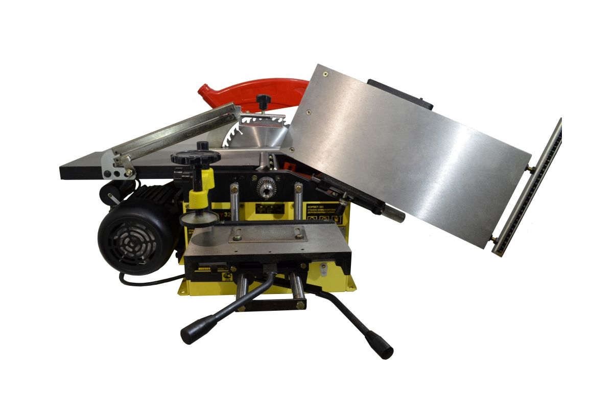 Энкор Корвет-320 93200 – комбинированный станок для поперечного и продольного пиления, сверления отверстий и фрезеровки. Мощность 1500 Вт. Максимально возможная частота вращения вала - 3500 об/мин.