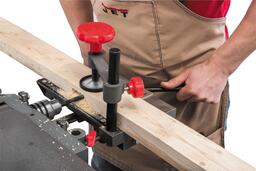 Установив сверлильный блок, вы сможете сверлить отверстия диаметром до 13 мм и глубиной до 90 мм, например, под мебельные шканты.