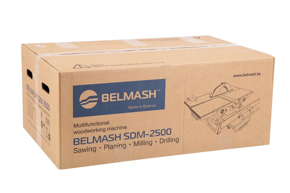 Универсальный станок БЕЛМАШ СДМ-2500 (ранее МАСТЕР-ПРАКТИК 2500) предназначен для обработки заготовок из древесины. Он используется для всех видов распиловки, строгания, сверления и фрезерования. Оборудование укомплектовано мощным двигателем на 2500 Вт. Угол распила и строгания изменяется влево и вправо под углом 45о. В качестве режущих элементов используются пильный диск, дисковая фреза и концевая фреза.