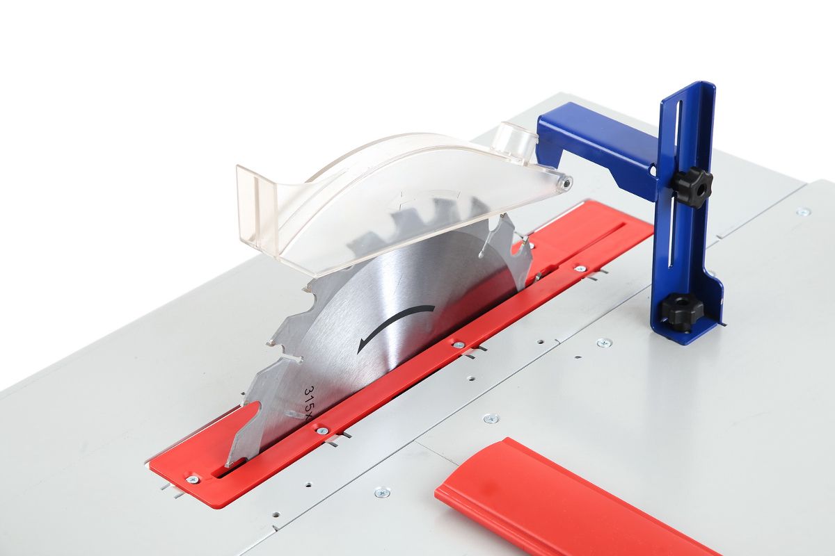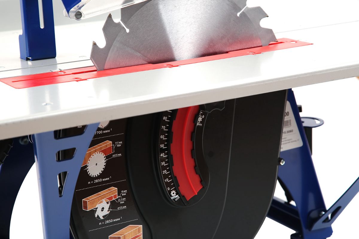 Аппарат обладает мощным двигателем на 2500 Вт. Это обеспечивает ему высокую производительность. В качестве режущих инструментов используются пильный диск, дисковая фреза и концевая фреза. Глубина пропила регулируется плавным поднятием и опусканием пильного диска. В комплект так же входят направляющие и поперечные линейки для распила. Они позволяют выполнять максимально точные резы.