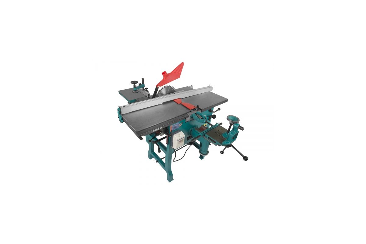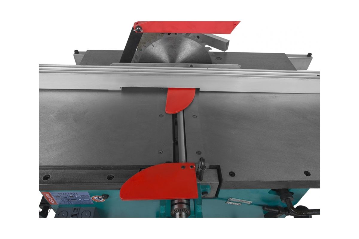 STURM! WM1924 — универсальный деревообрабатывающий станок для изготовления мебели. Данная модель позволяет производить такие операции с деревом, как фрезерование, рейсмусование, сверление глухих отверстий, продольное строгание, распил дерева, заточка дисковых пил, прорезка канавок, вырезка пазов, снятие фасок и т.д. Внушительный вес агрегата делает его максимально устойчивым. Расчетная нагрузка устройства — 6 часов в день. Максимальная ширина строгания — 30 см.