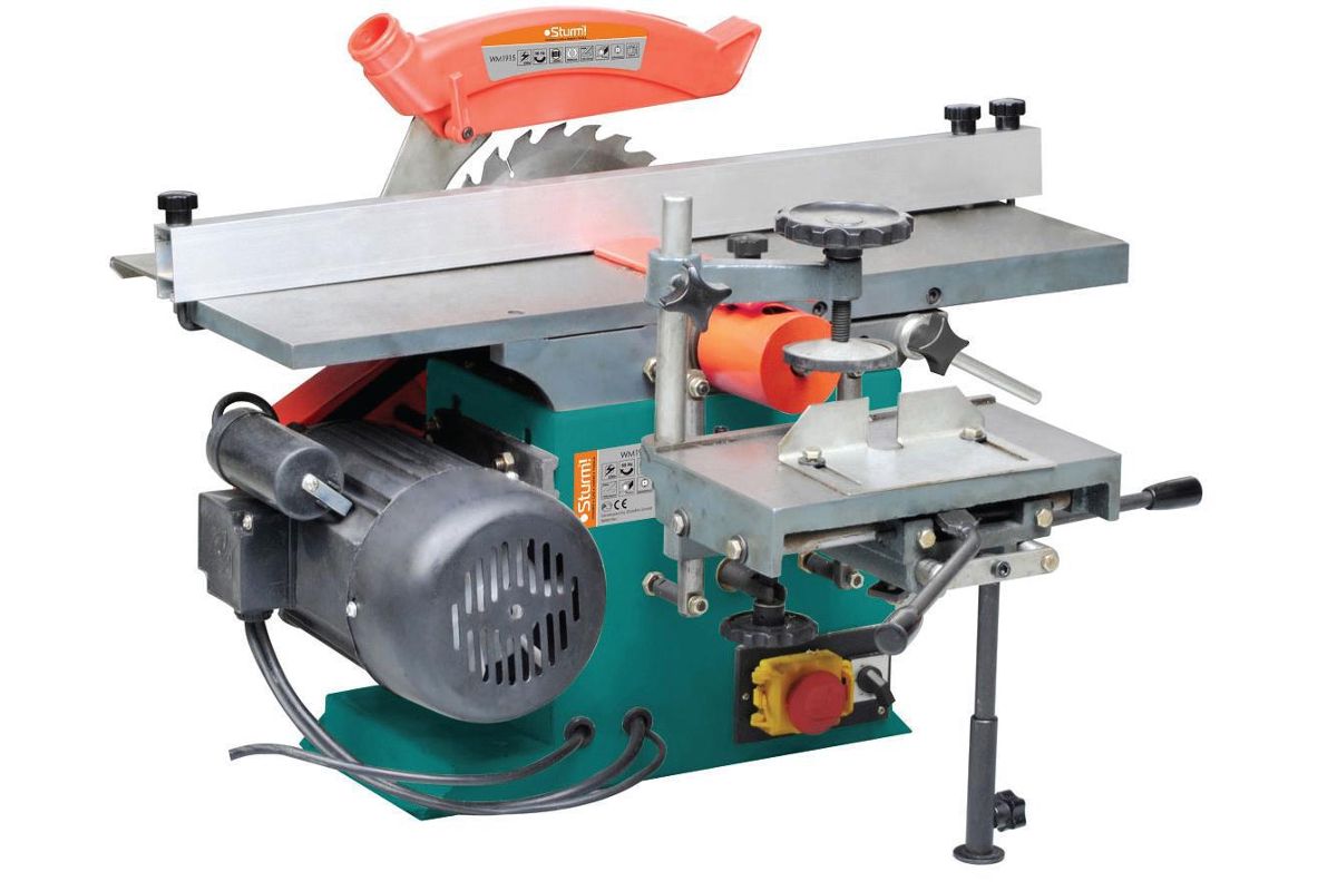 STURM! WM1915 — универсальный деревообрабатывающий станок для обработки твердых и мягких пород дерева. Данная модель способна производить операции по фрезерованию, пилению, сверлению, строганию и т.д. Станок отличается компактностью, что позволяет использовать его в небольших домашних столярных мастерских. Также может применяться на мебельных фабриках и деревообрабатывающих производствах. Максимальная ширина строгания — 12,5 см.