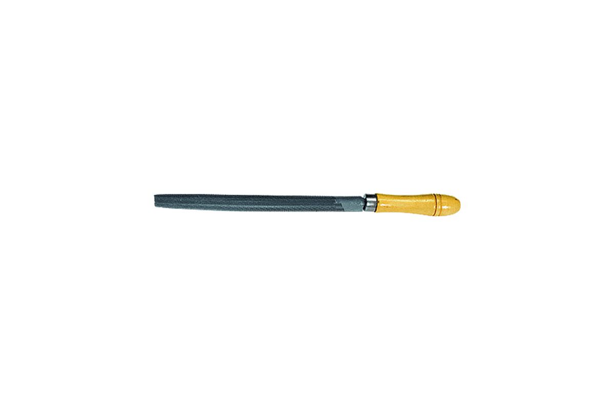 Напильник предназначен для качественной обработки плоских и круглых поверхностей твердых материалов. Инструмент имеет двойную перекрестную насечку №2. Площадь сечения напильника уменьшается от середины к носу. Напильник изготовлен из углеродистой стали. Поставляется в комплекте с деревянной рукояткой, которая покрыта бесцветным лаком, защищающим древесину от высыхания и набухания.