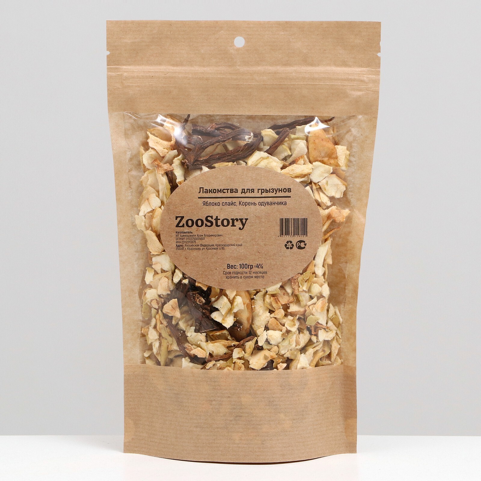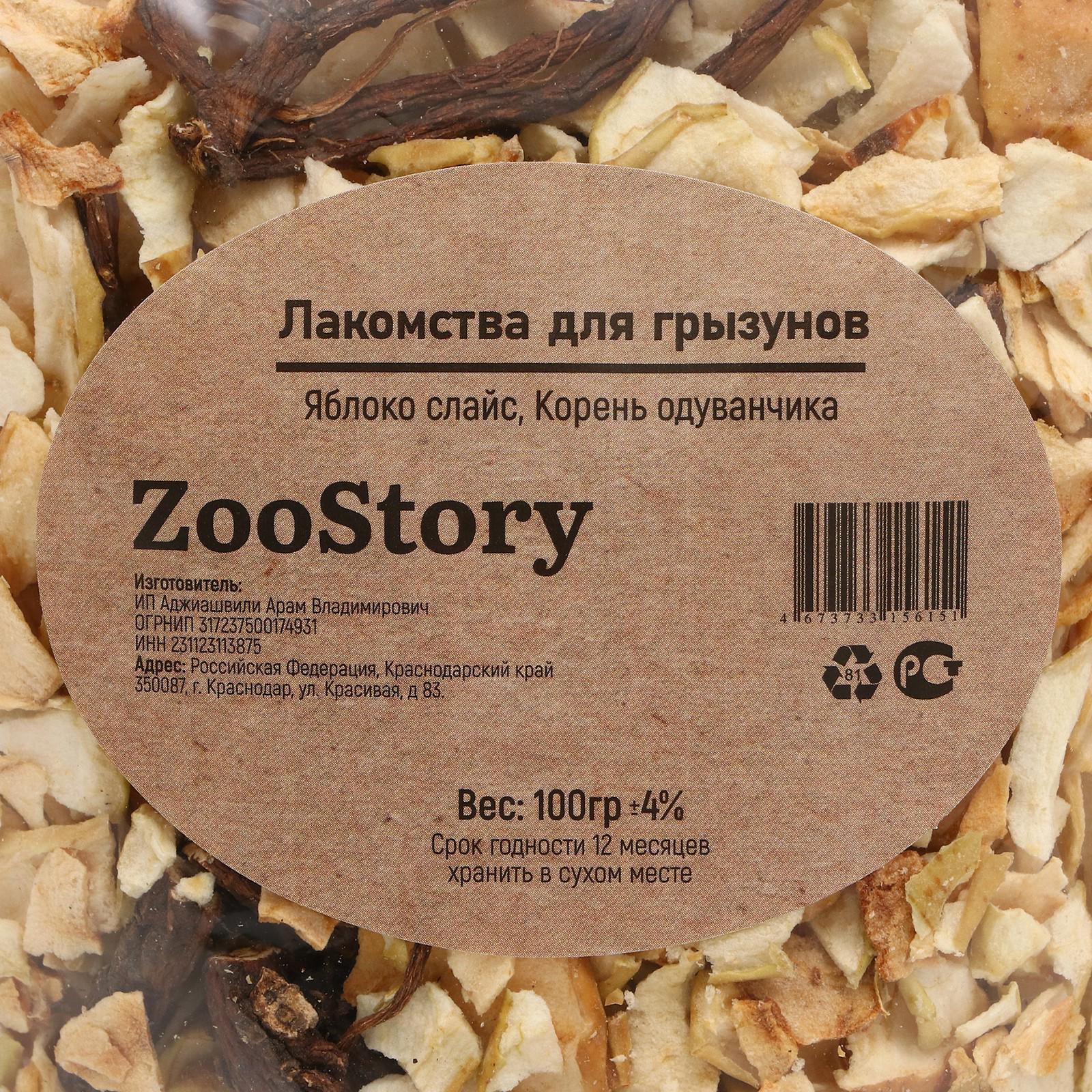 Лакомство для грызунов, сушёное яблоко/корень одуванчика, 100 г