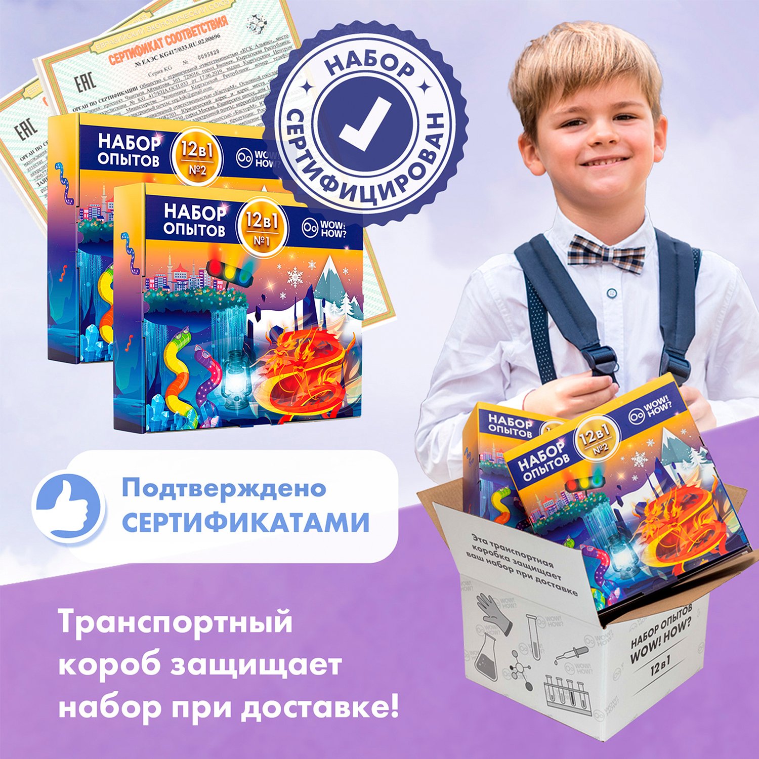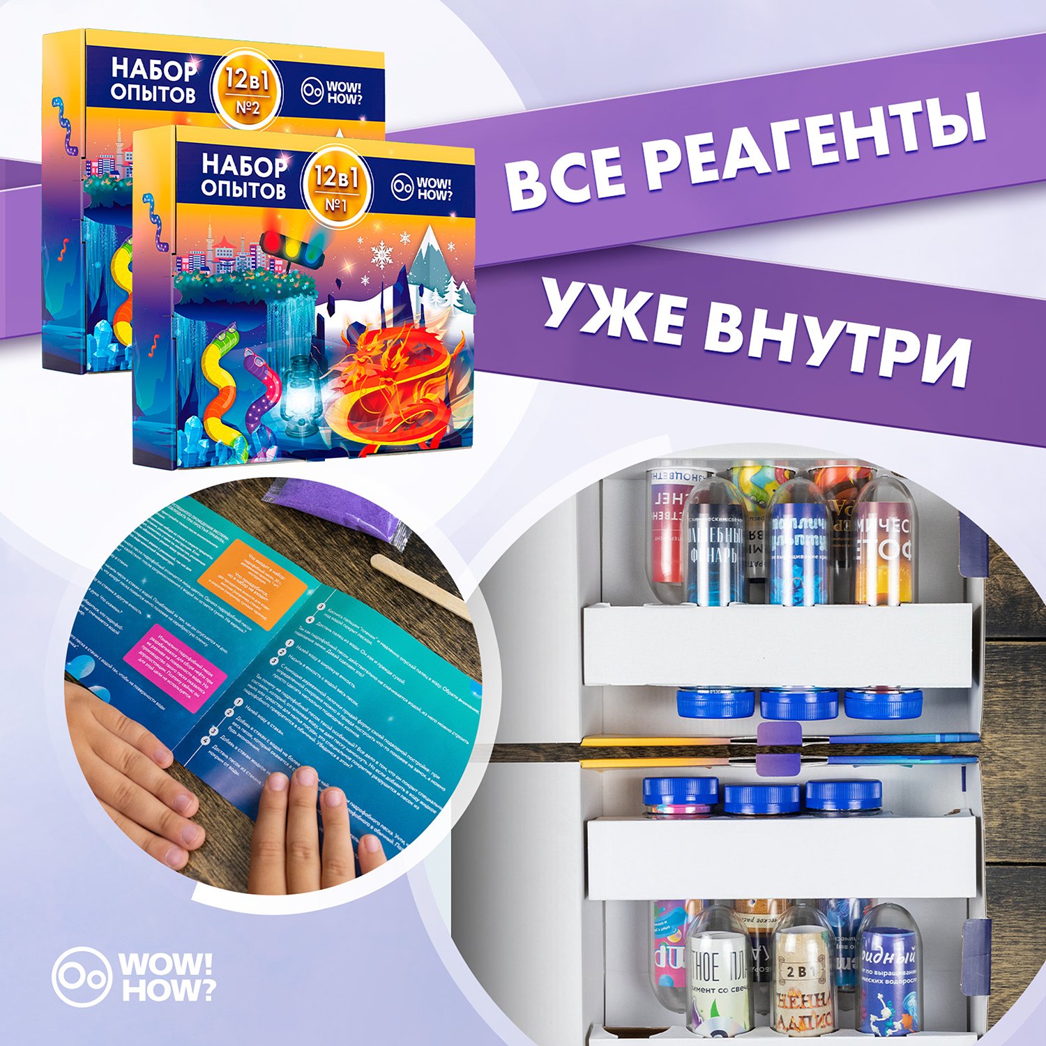 Детский набор для опытов WOW! HOW? большой подарочный 12 в 1 Юный химик combo_12