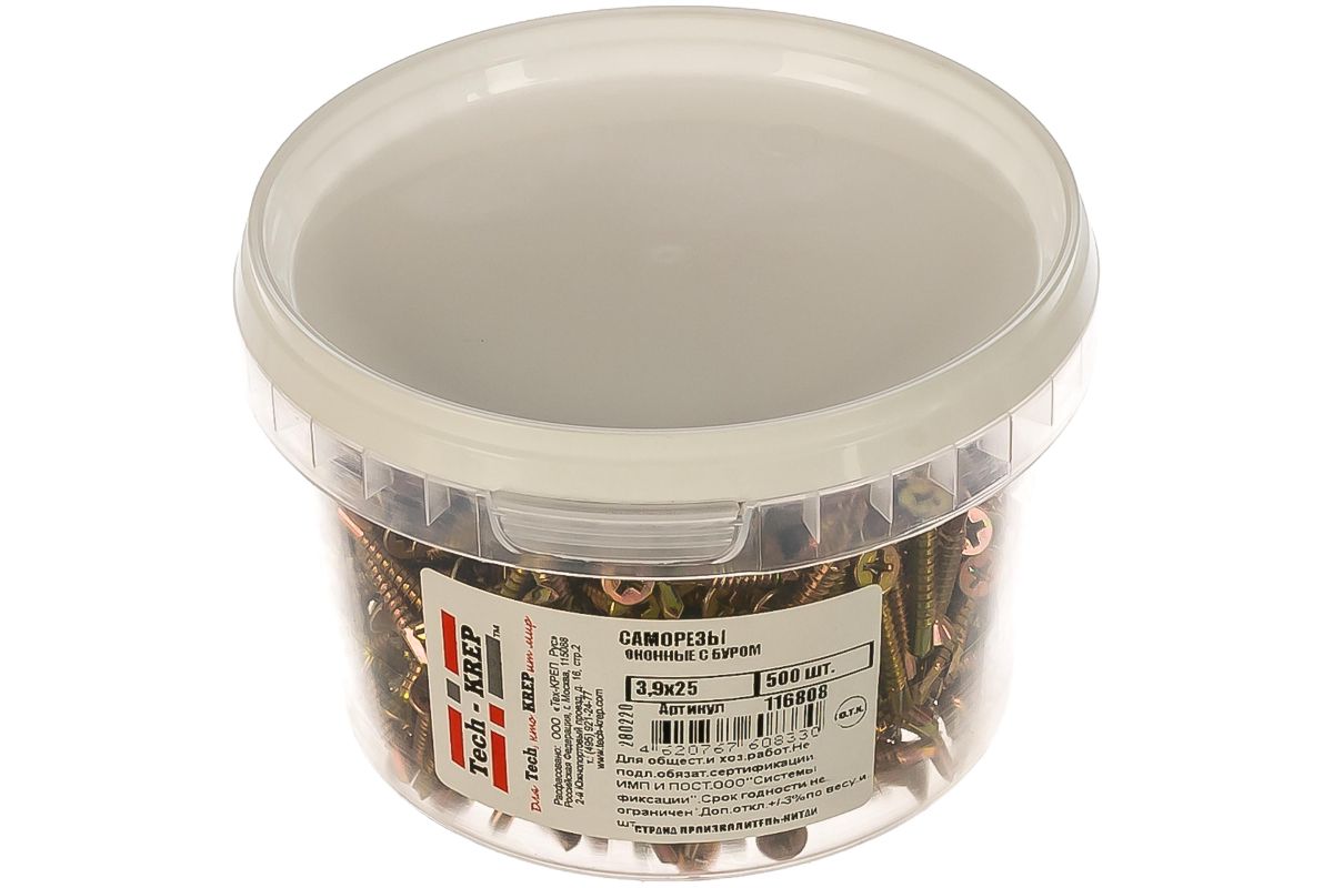 Саморезы TECH-KREP 116808 оконные с буром 3.9х25 (500шт) желтые - ведро мал