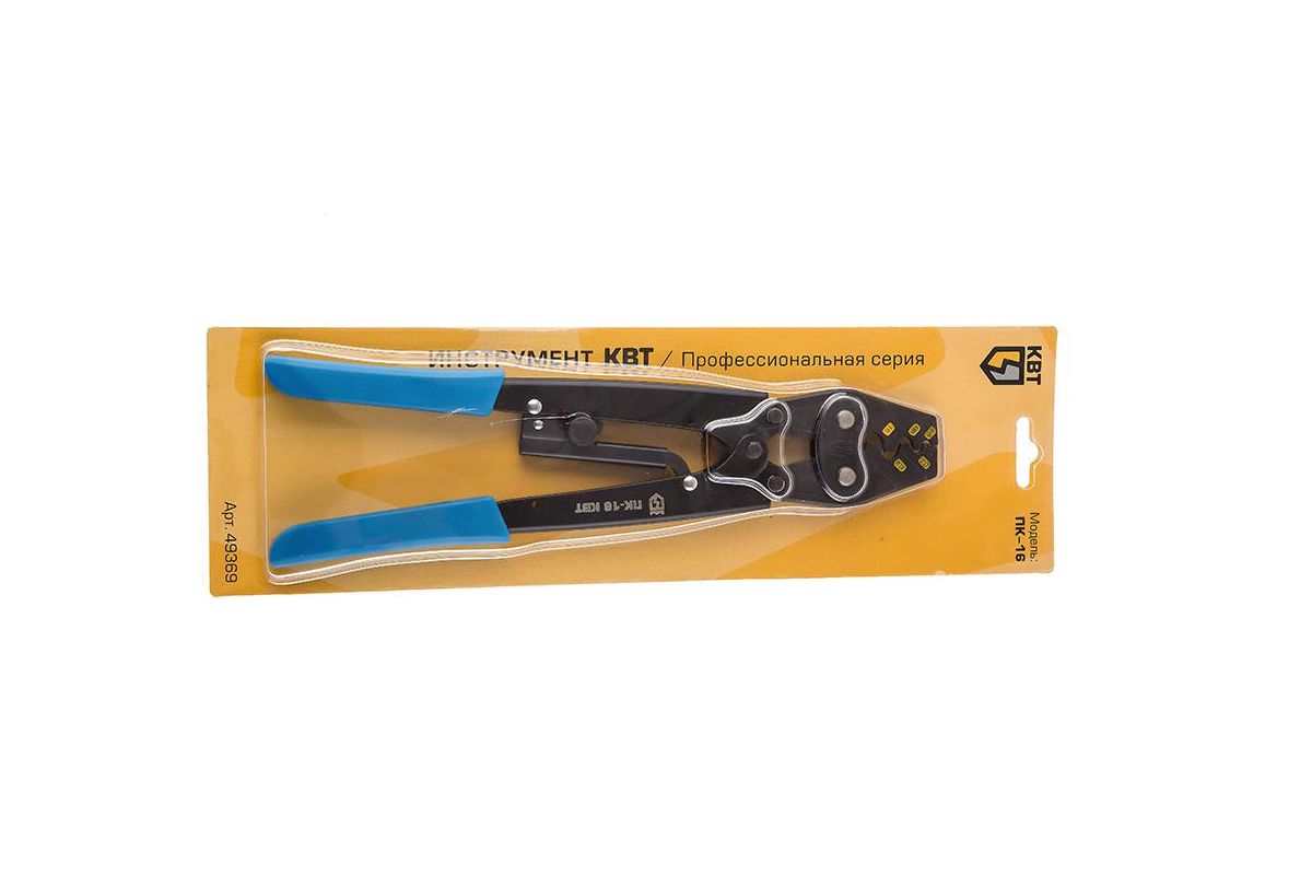 Пресс-клещи КВТ ПК-16 подходят для опрессовки многопроволочных жил с сечением от 1,5 до 16 мм².