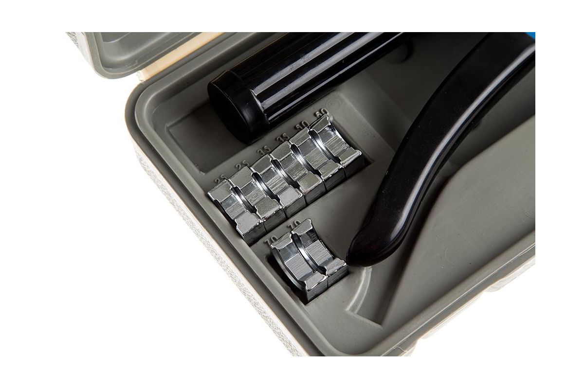 Гидравлический пресс КВТ ПГР-70 подходит для работы с кабелями, наконечниками и гильзами с сечением от 4 до 70 мм².