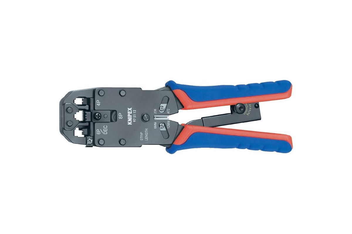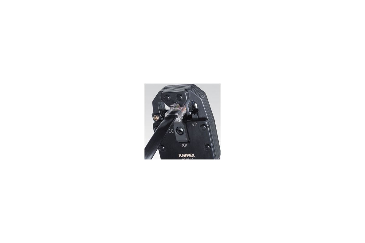 для опрессовки 4-, 6- и 8-полюсных штекеров Western типа RJ 10 (ширина 7,65 мм), типа КО 11/12 (ширина 9,65 мм) и типа RJ 45 (ширина 11,68 мм)