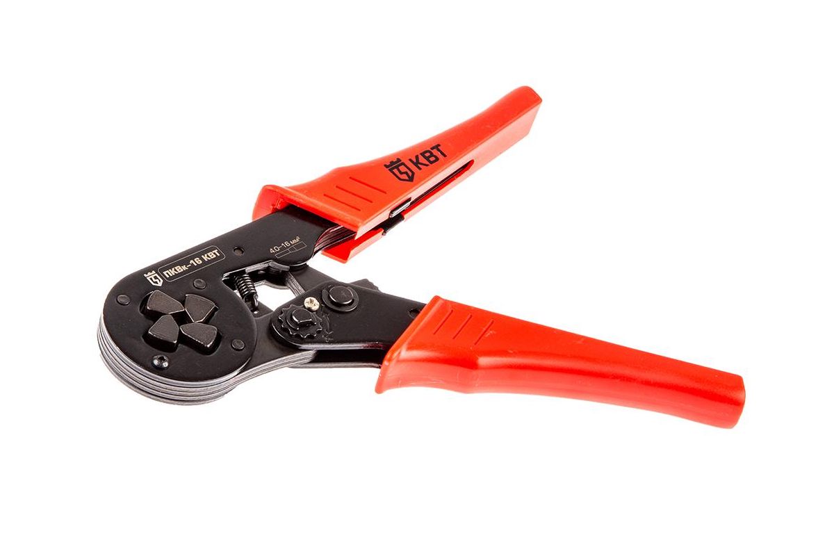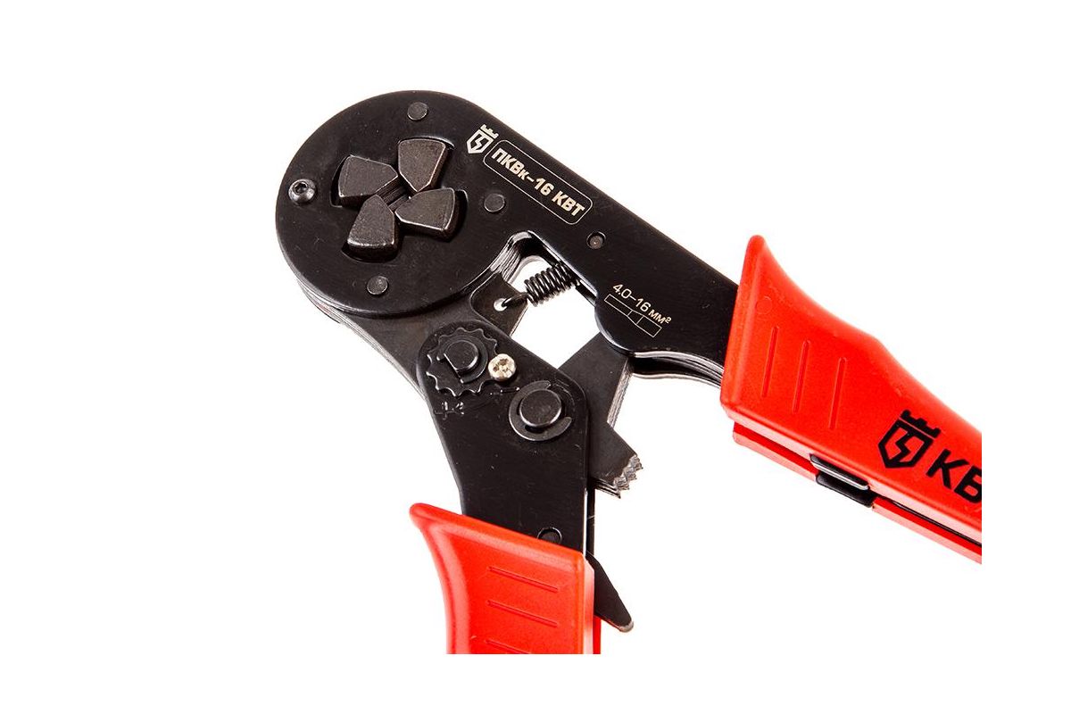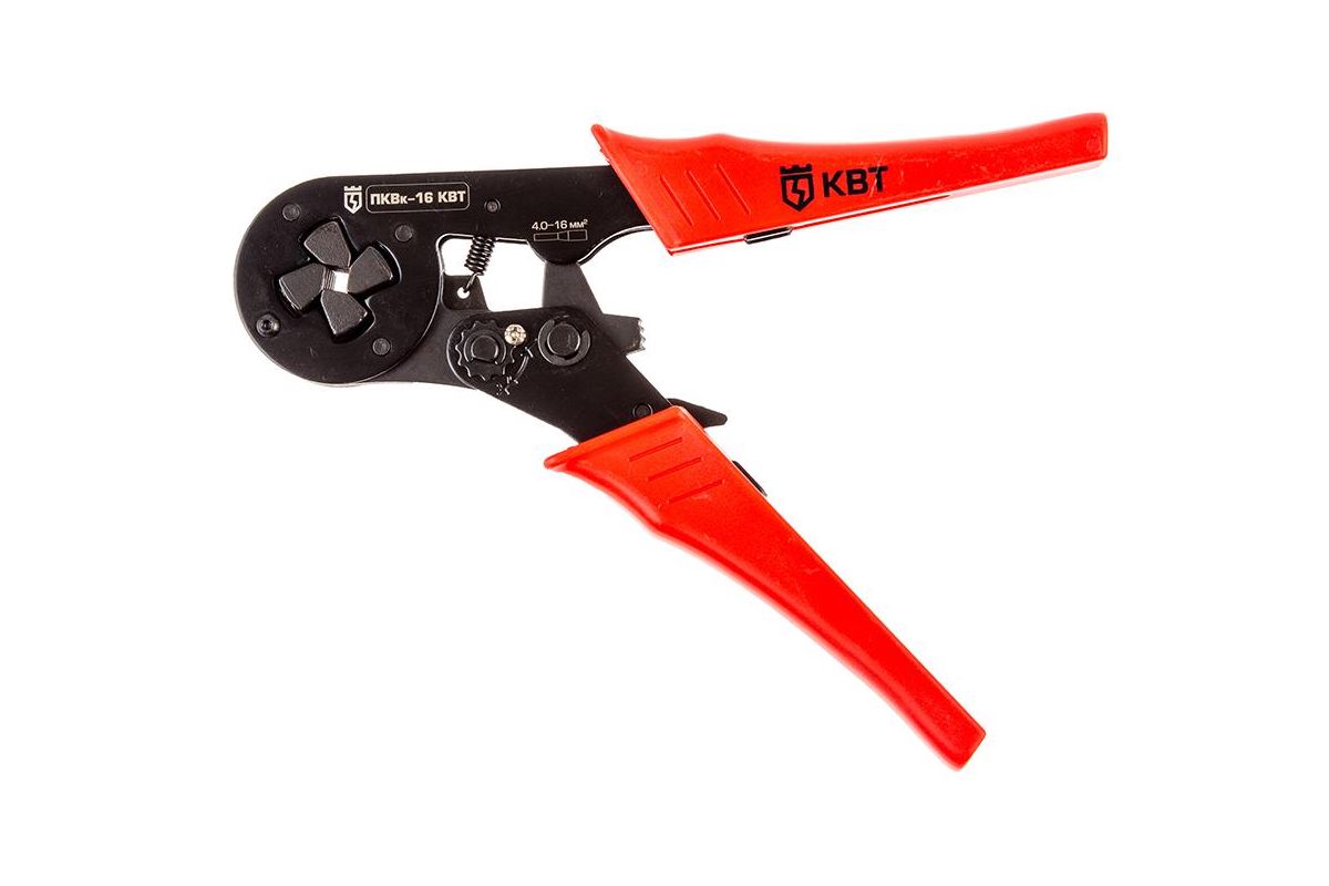Пресс-клещи КВТ ПКВк-16 применяются для обжима одинарных и двойных втулочных наконечников - НШВИ и НШВ - 6,0–16 мм², а также НШВИ(2) - 2х4–2х6 мм².