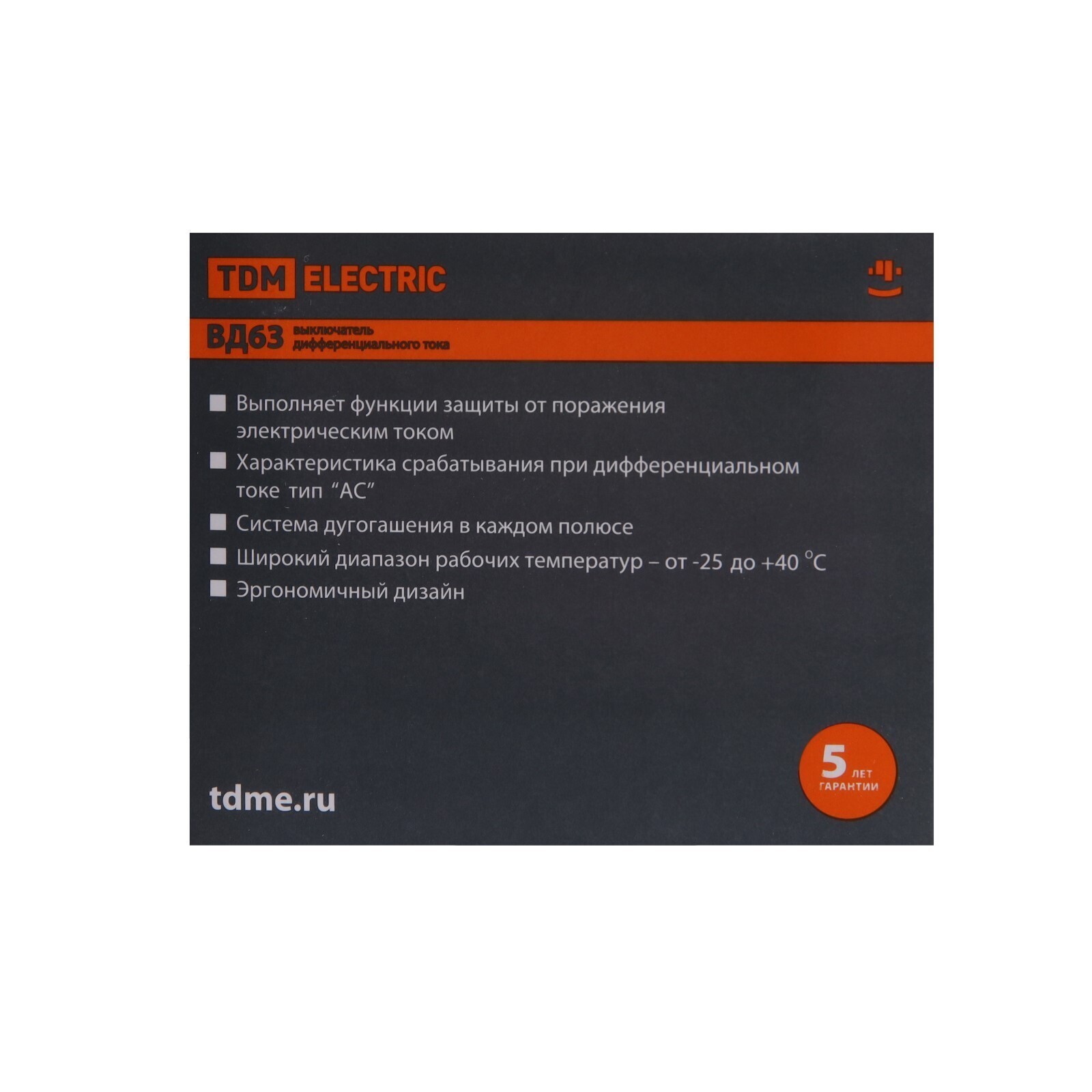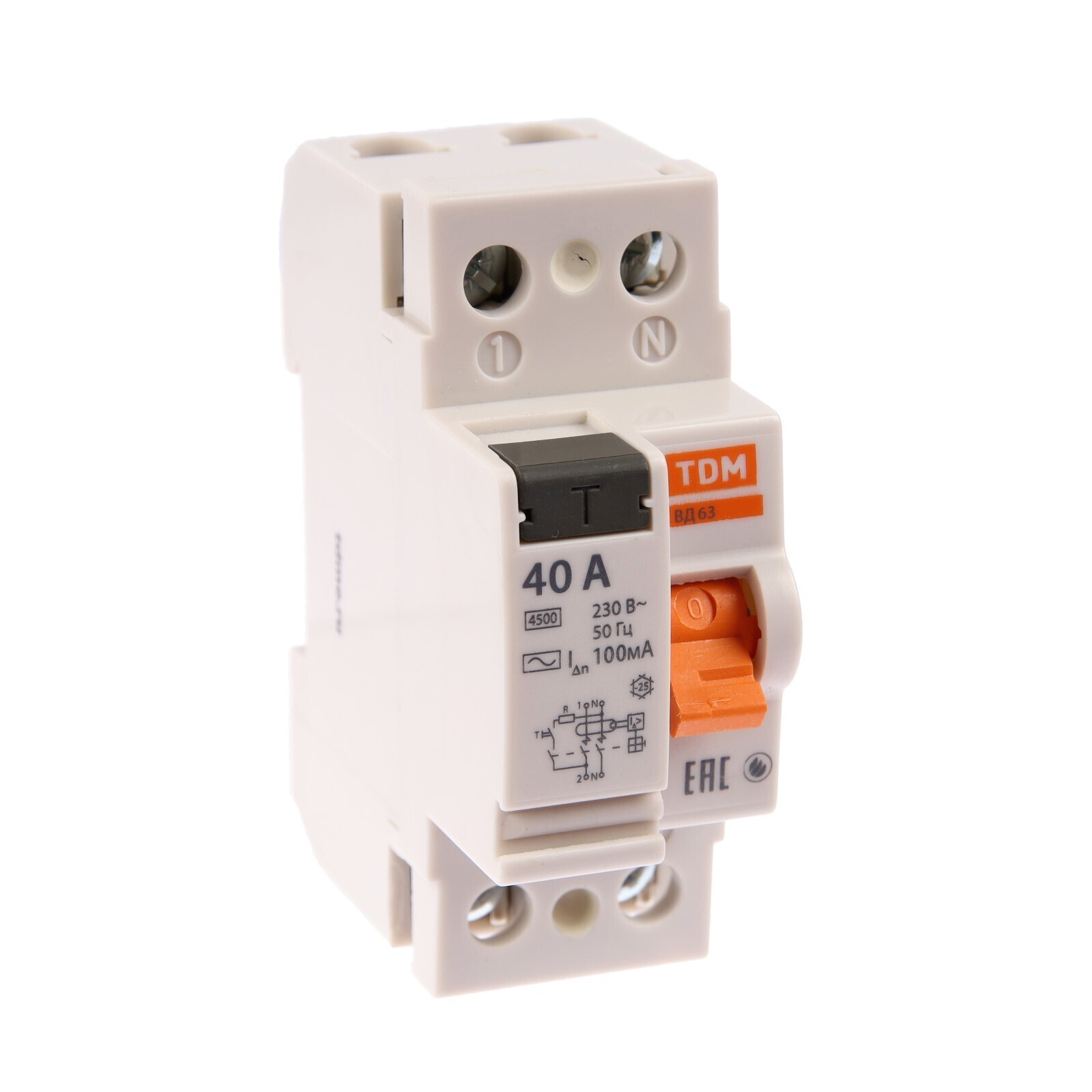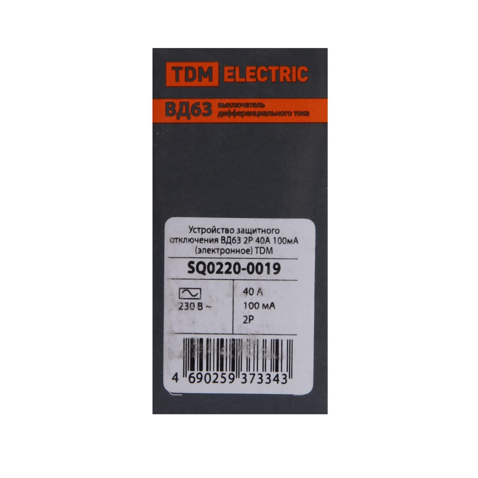 УЗО TDM ВД63, 2п, 40 А, 100мА, электронное, SQ0220-0019