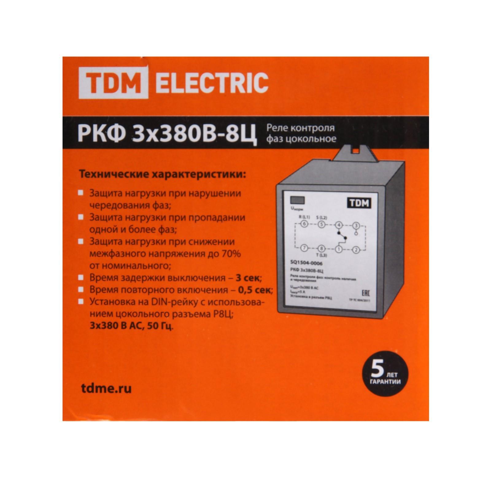 Реле контроля фаз цокольное TDM РКФ, 3х380 В, 8 Ц, SQ1504-0006