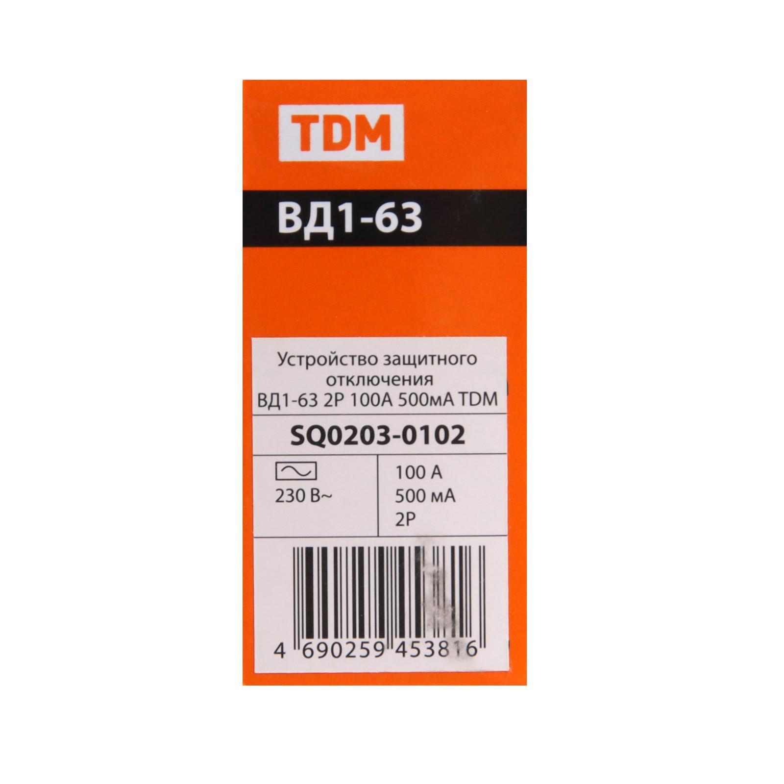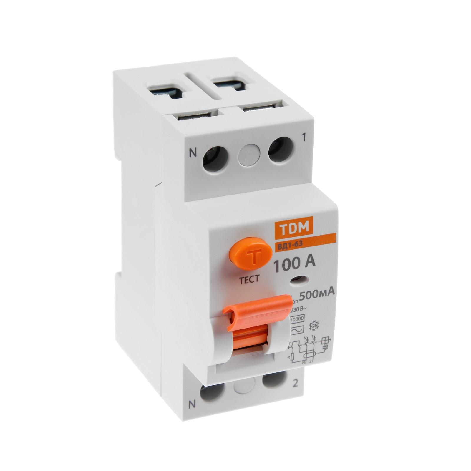 УЗО TDM ВД1-63, 2п, 100 А, 500мА, SQ0203-0102