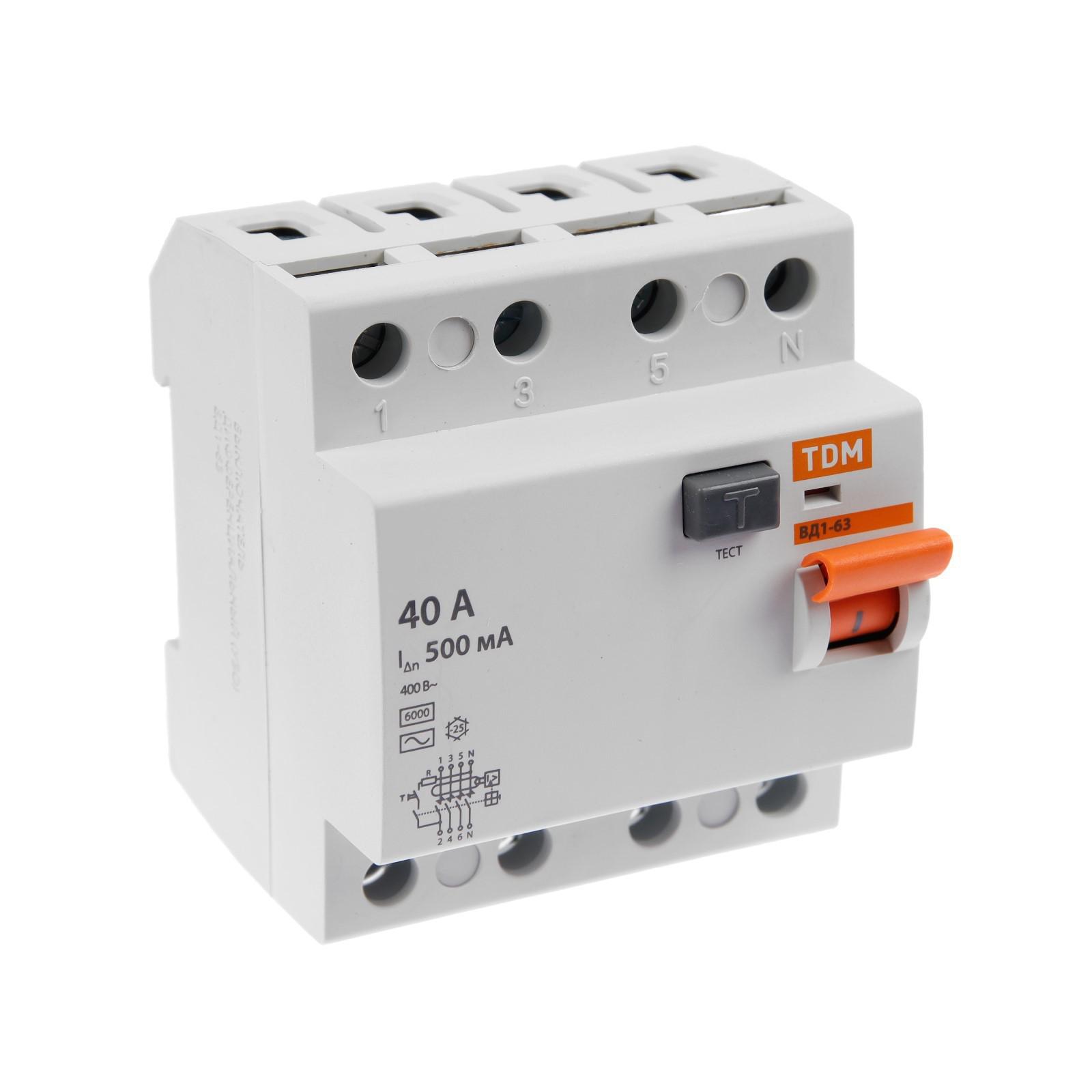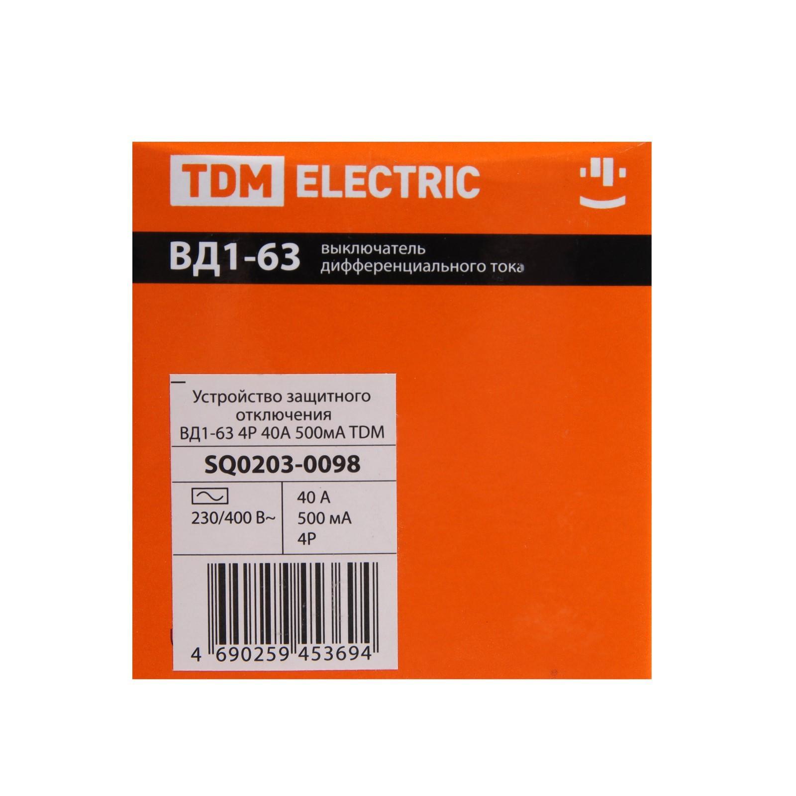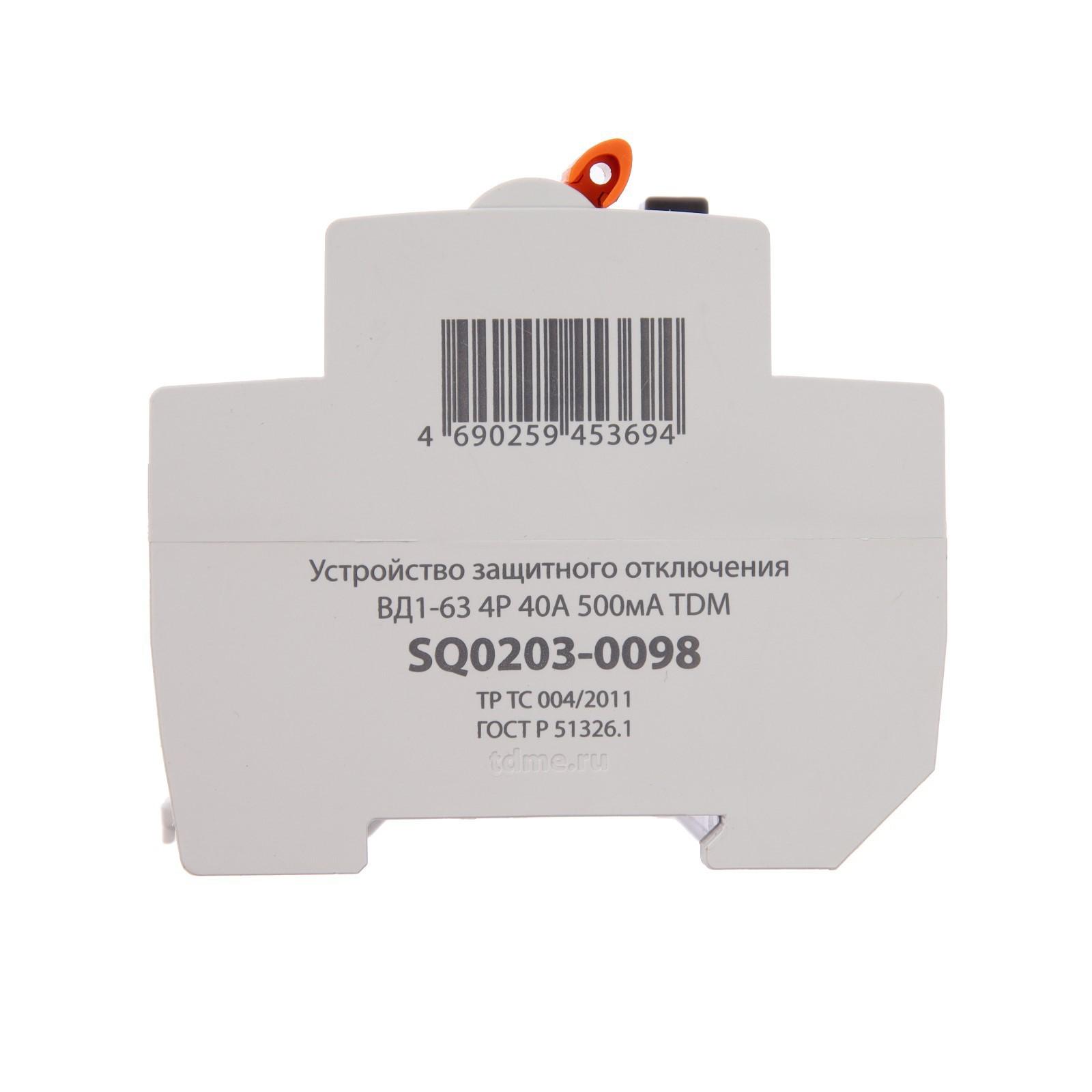 УЗО TDM ВД1-63, 4п, 40 А, 500мА, SQ0203-0098