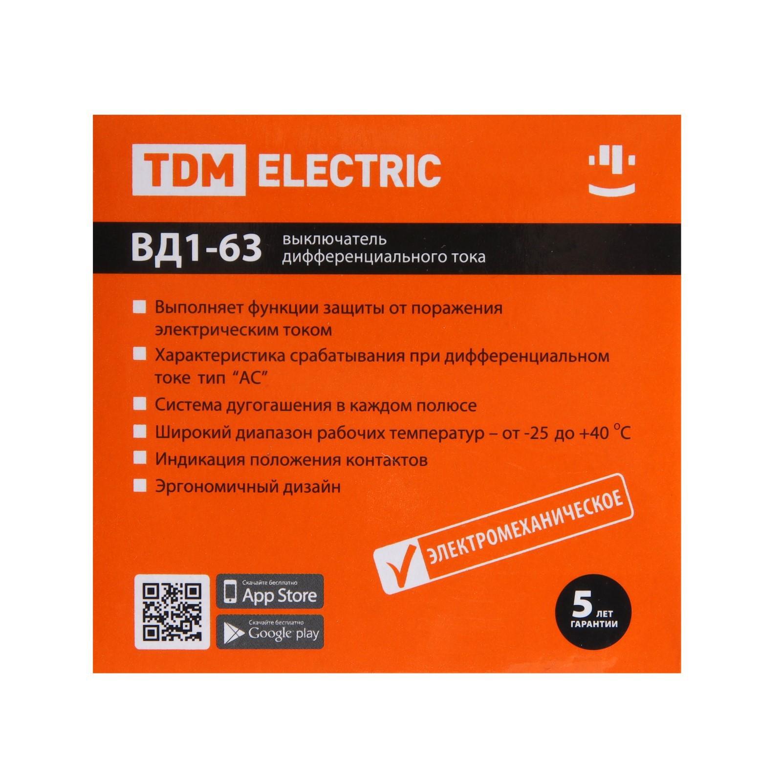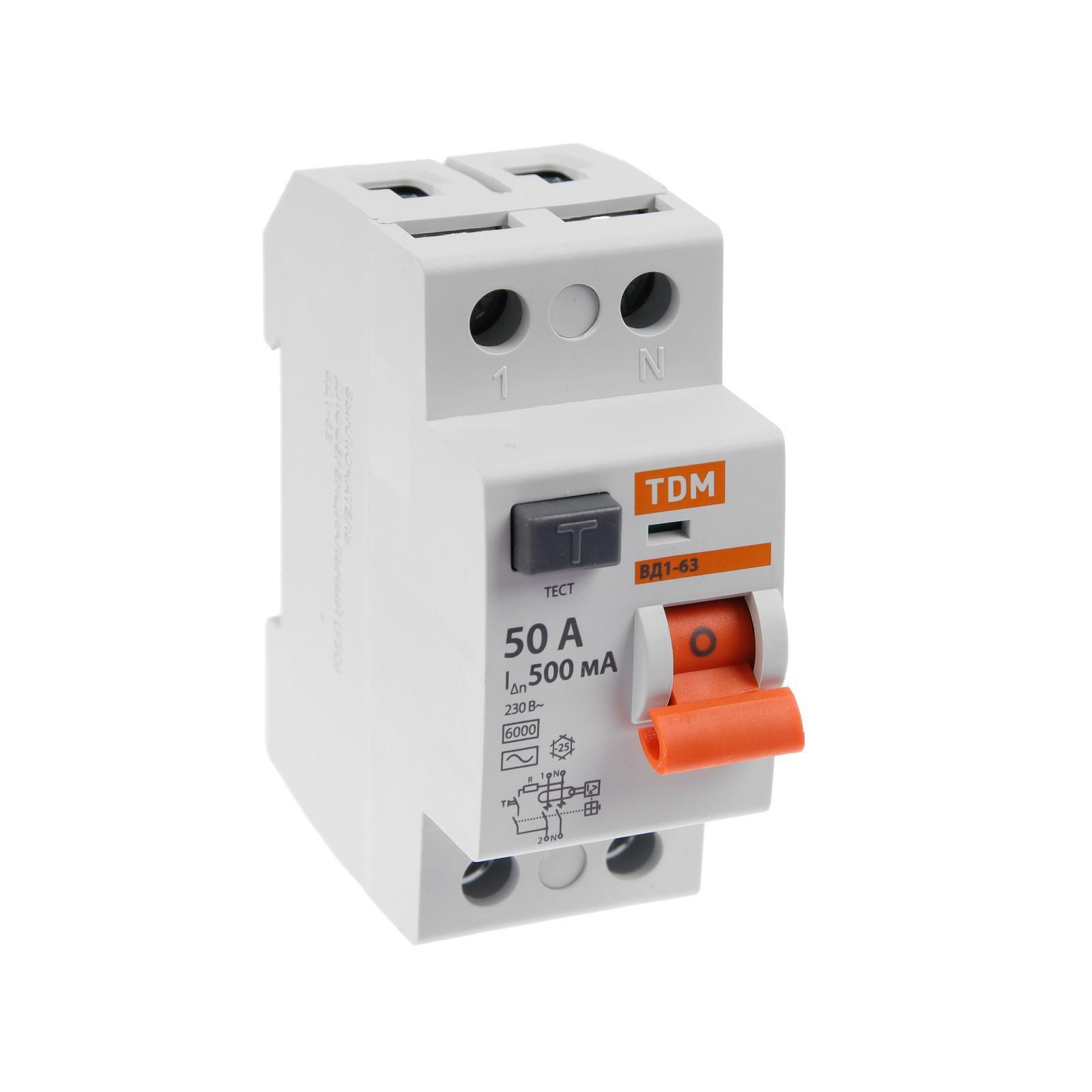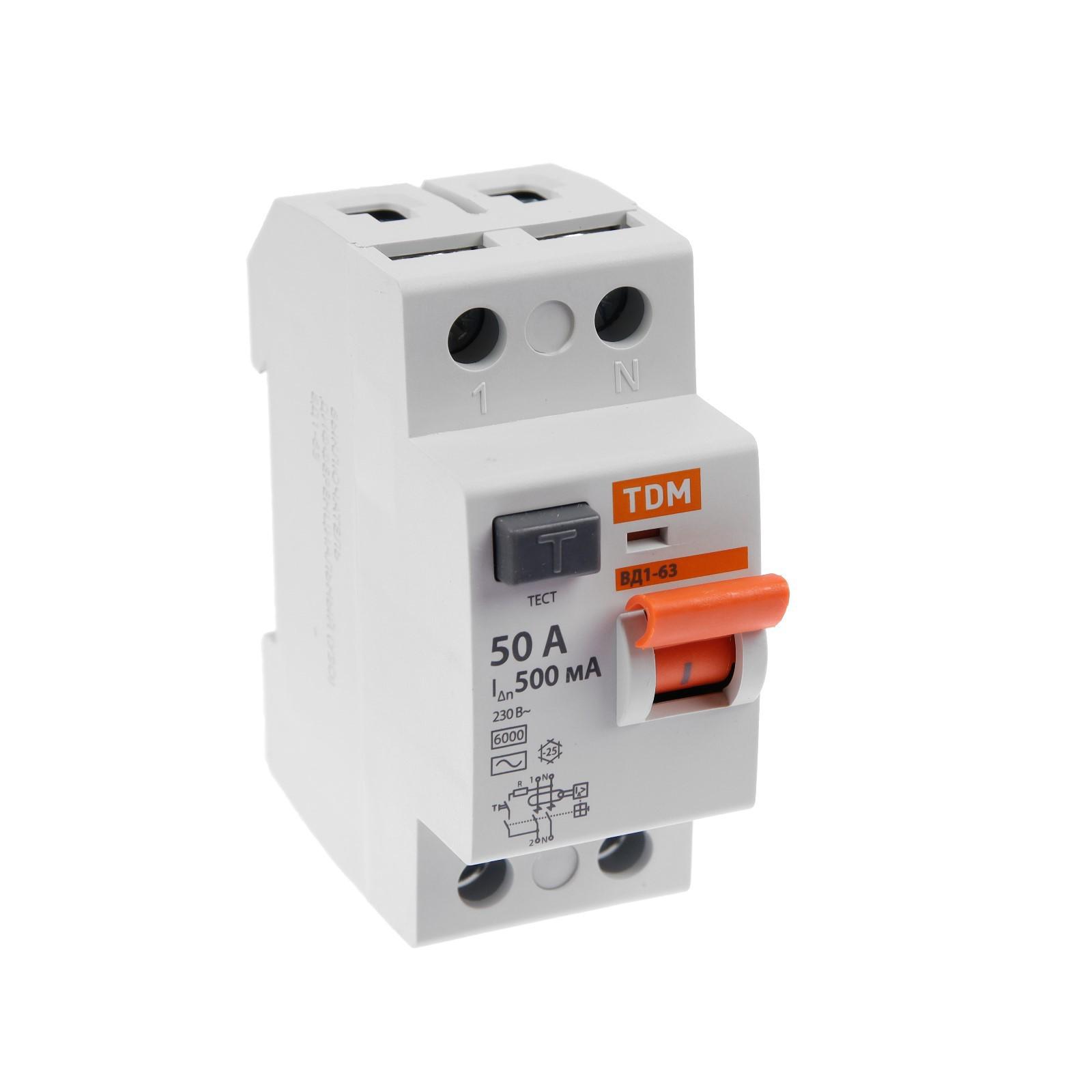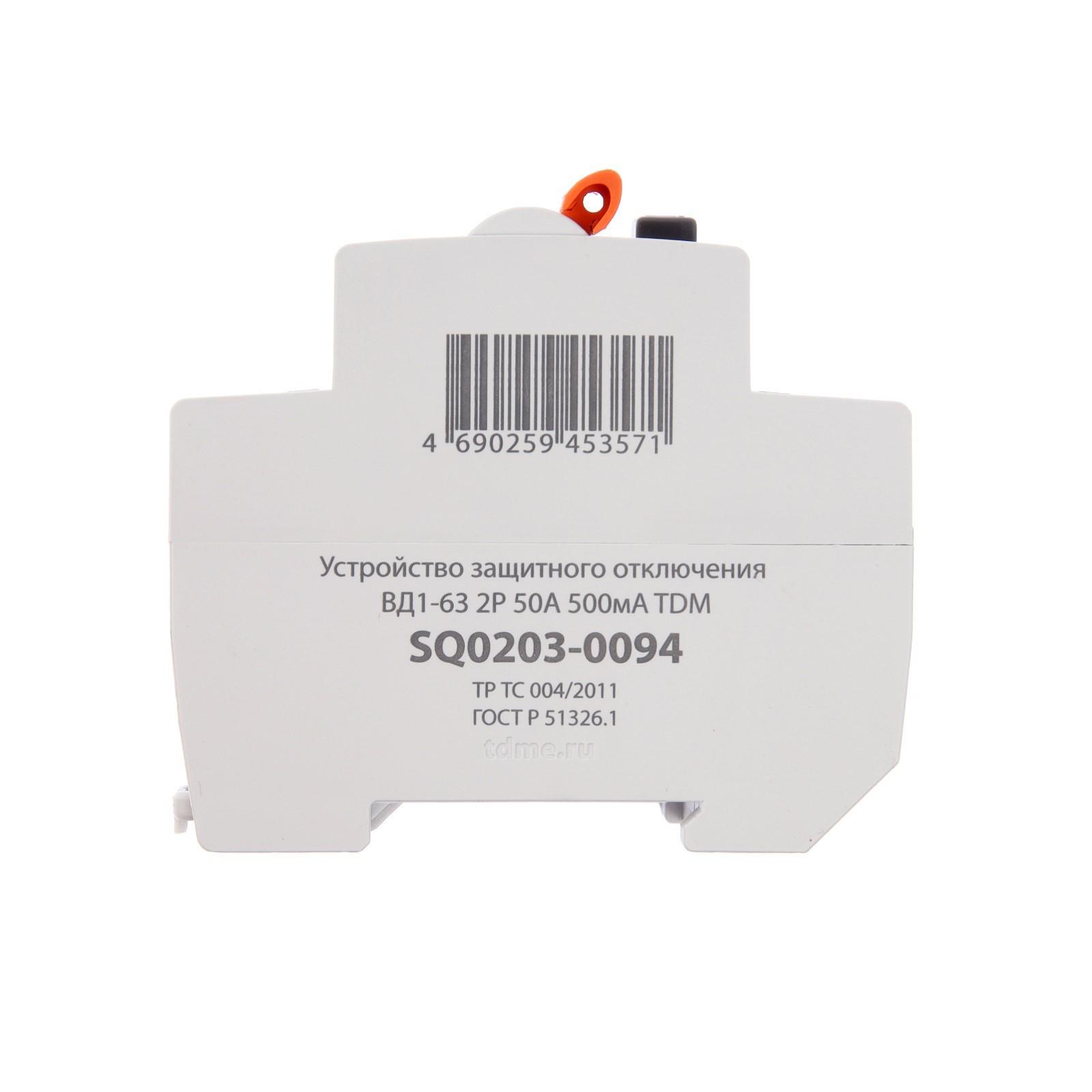 УЗО TDM ВД1-63, 2п, 50 А, 500мА, SQ0203-0094