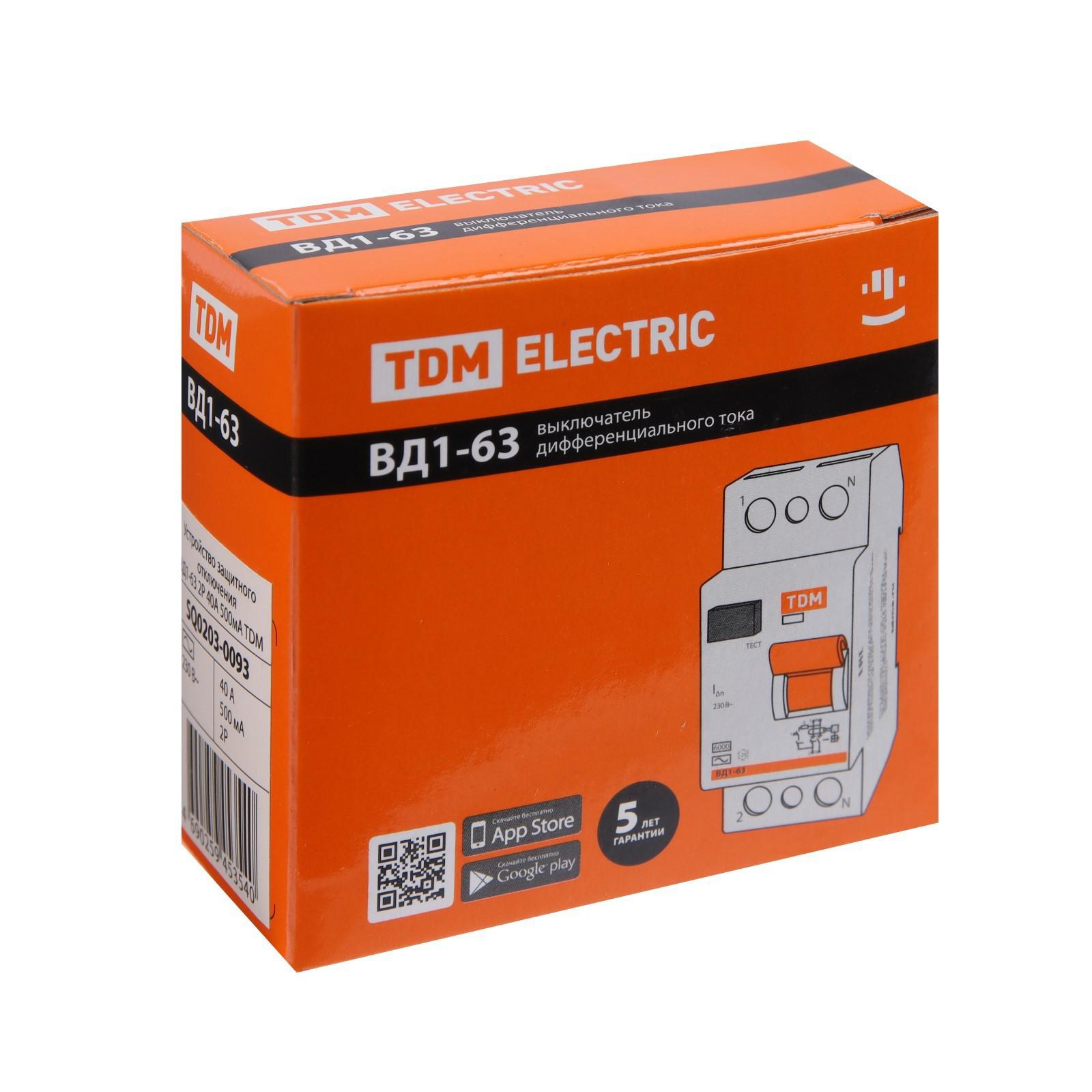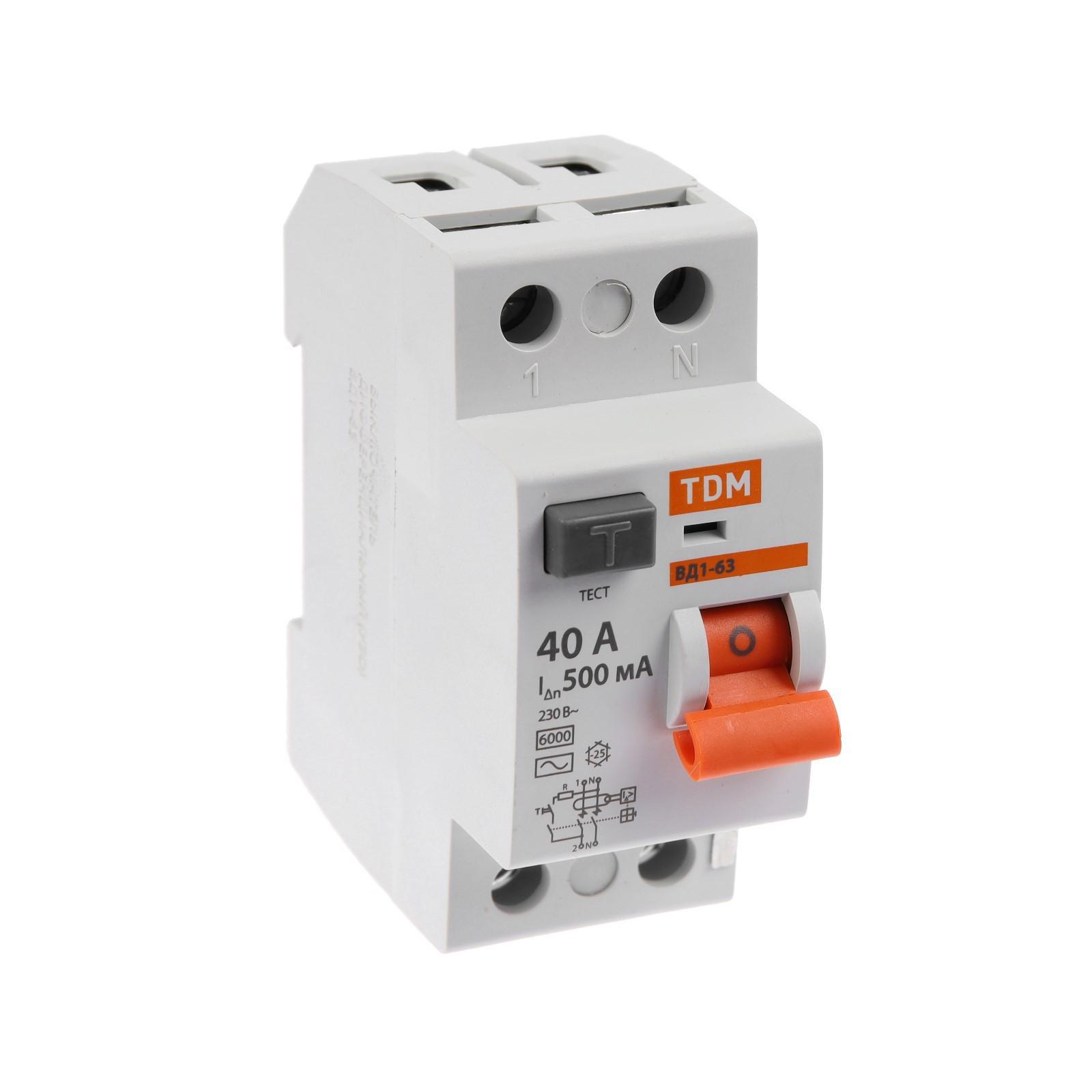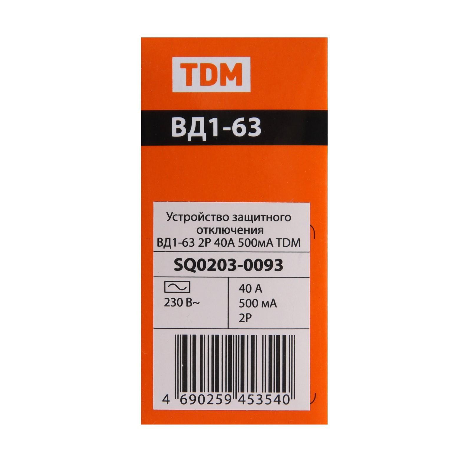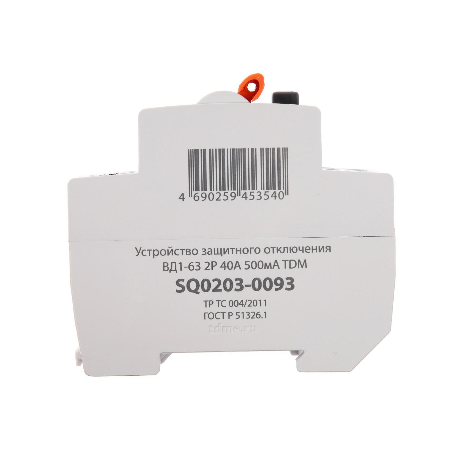 УЗО TDM ВД1-63, 2п, 40 А, 500мА, SQ0203-0093