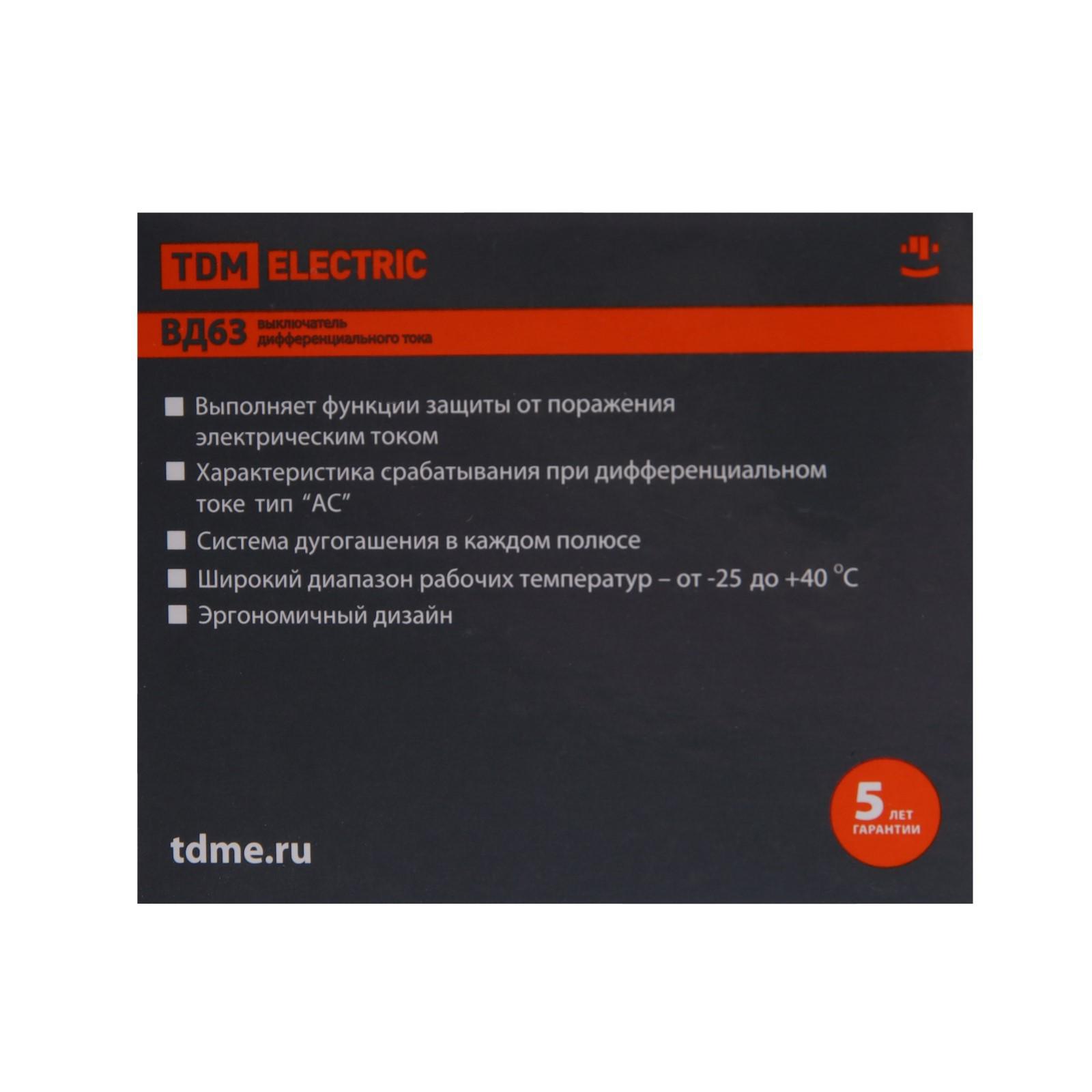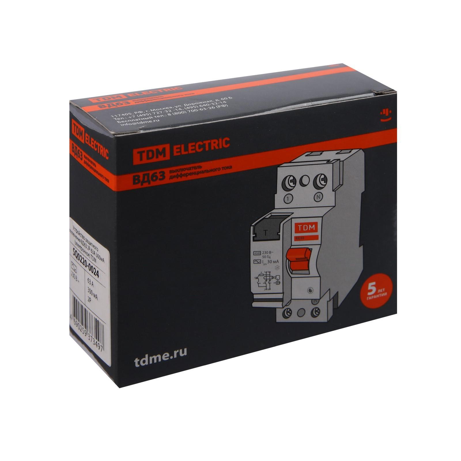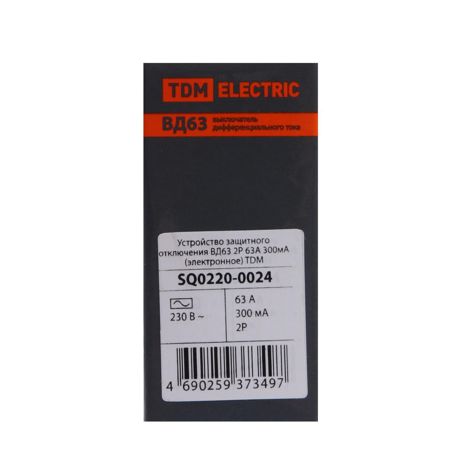 УЗО TDM ВД63, 2п, 63 А, 300 мА, электронное, SQ0220-0024