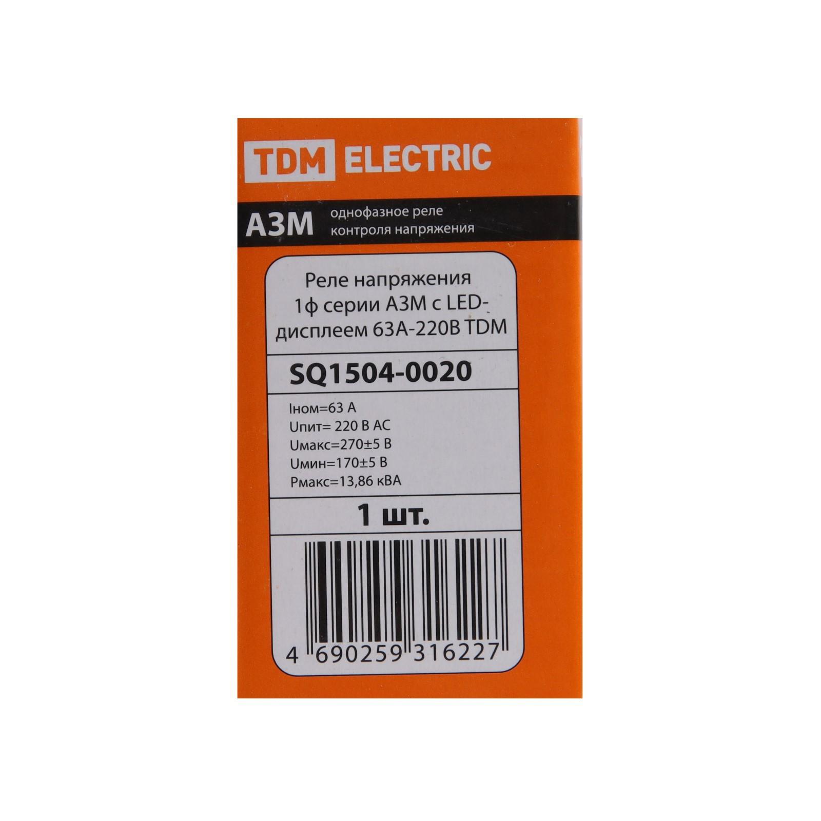 Реле напряжения TDM АЗМ-LED, 1-модуль, 63 А, SQ1504-0020