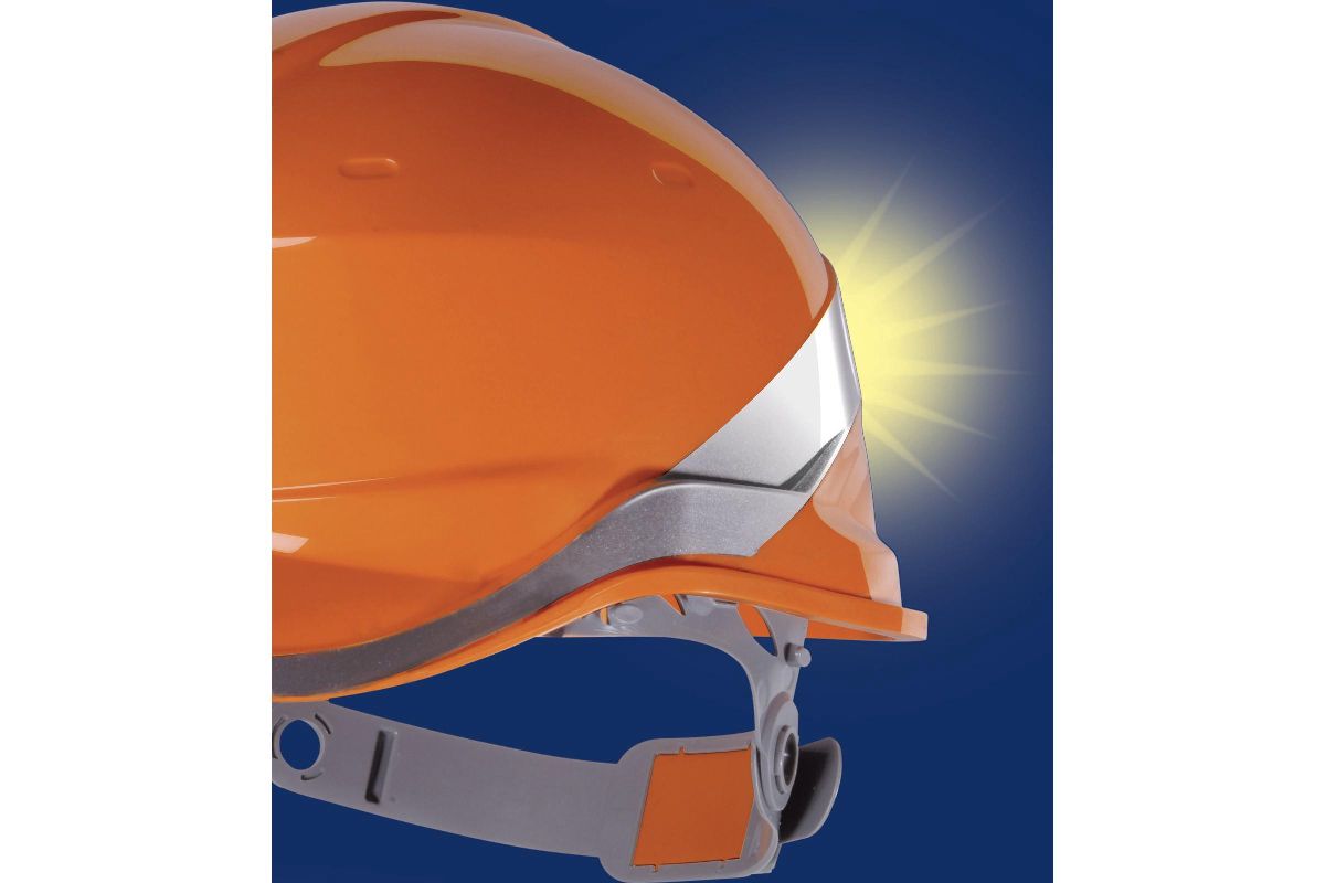 - Светоотражающая полоса по периметру каски;