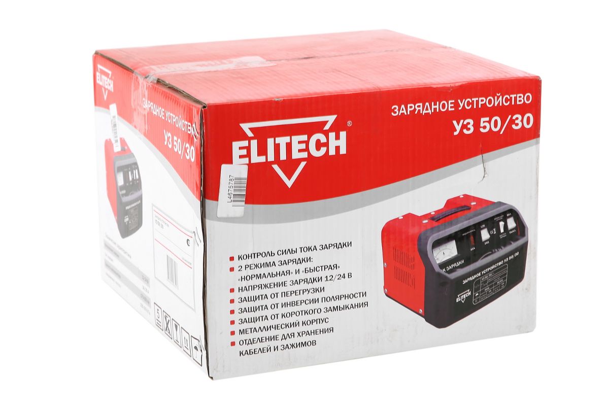 Зарядное устройство ELITECH УЗ 50/30 устройство зарядное 12-24в 1кВт 16/30а акк170/350а 10.9кг